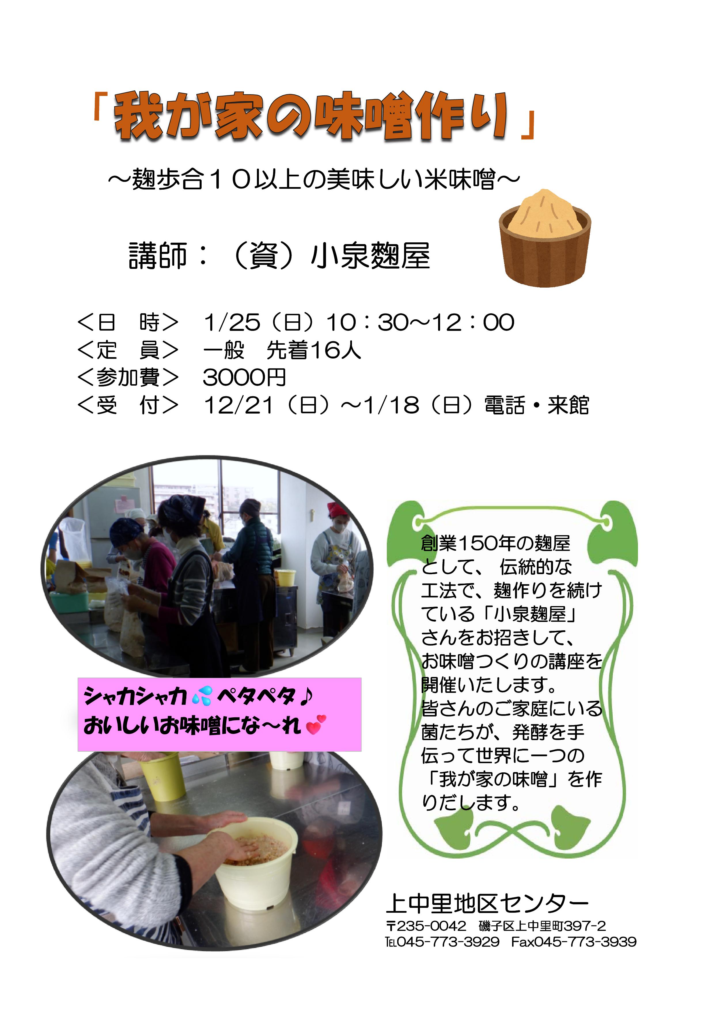 お味噌つくりの講座を開催いたします。