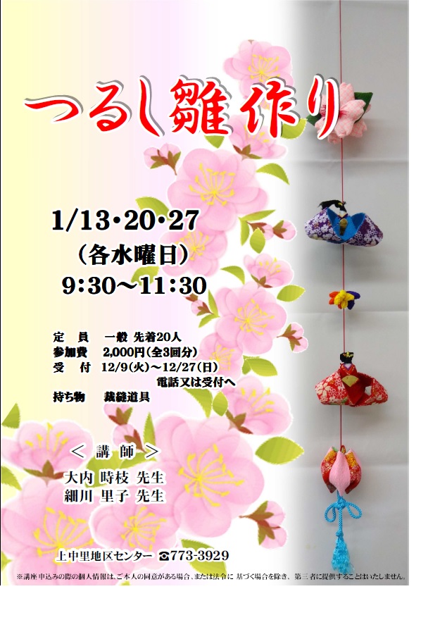 - 1/15・29、2/12・26、3/11 各金曜日 全5回