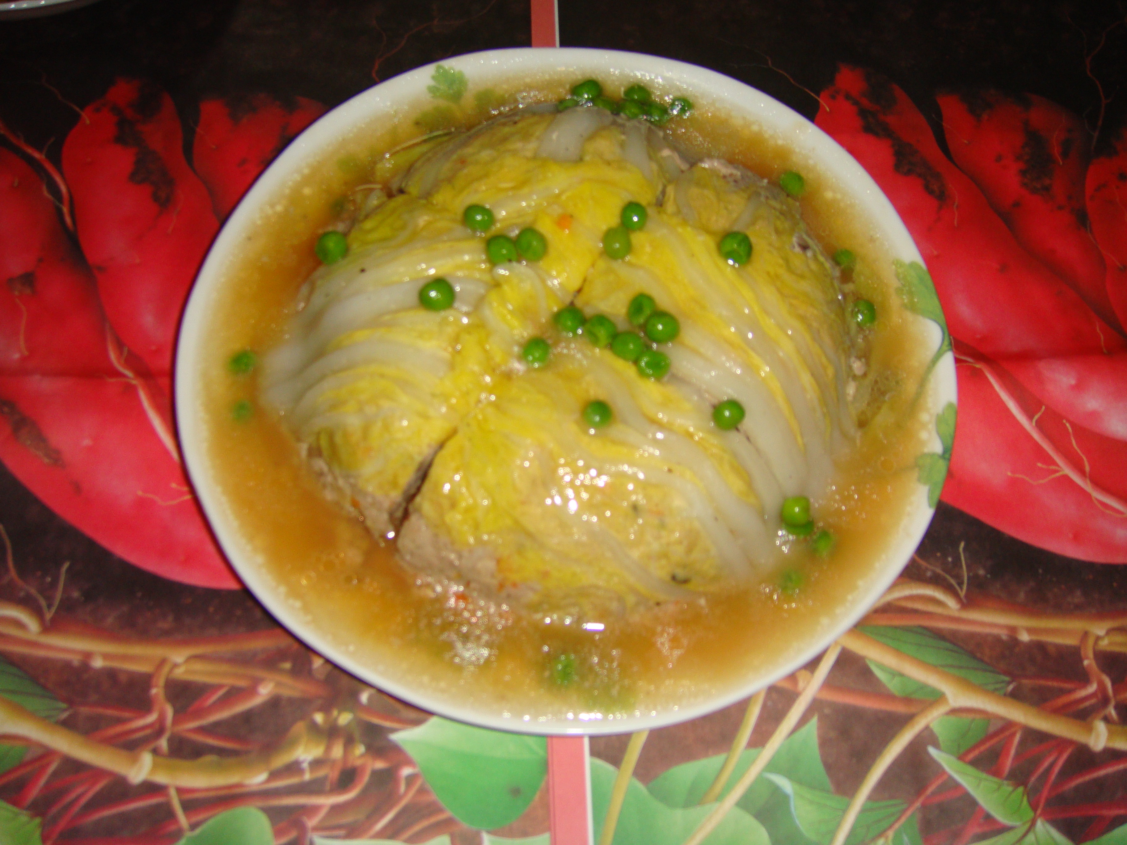メニューは、白菜と豚肉の蒸しあんかけ・糸大根の団子・スペアリブと長芋のスープ・鶏肉と生姜のおかゆです。