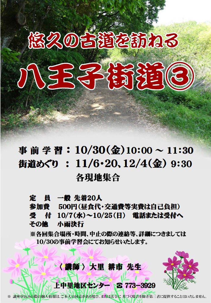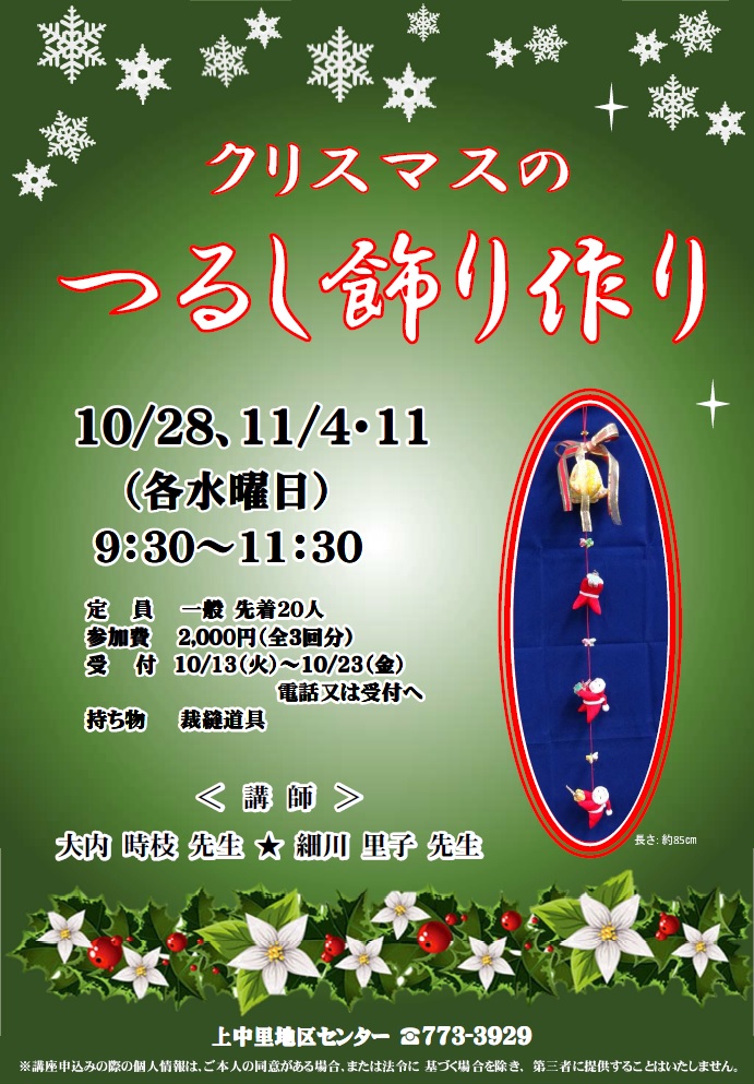 - 10/28、11/4・11 各水曜日 全3回