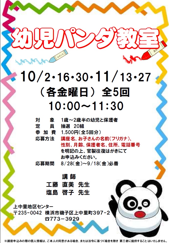 子どもの名前(ふりがな)、性別、月齢、参加保護者名、住所、電話番号を明記の上、官製往復はがきでお申込みください。