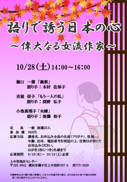 樋口 一葉「裏紫」 語り手:木村佐保子