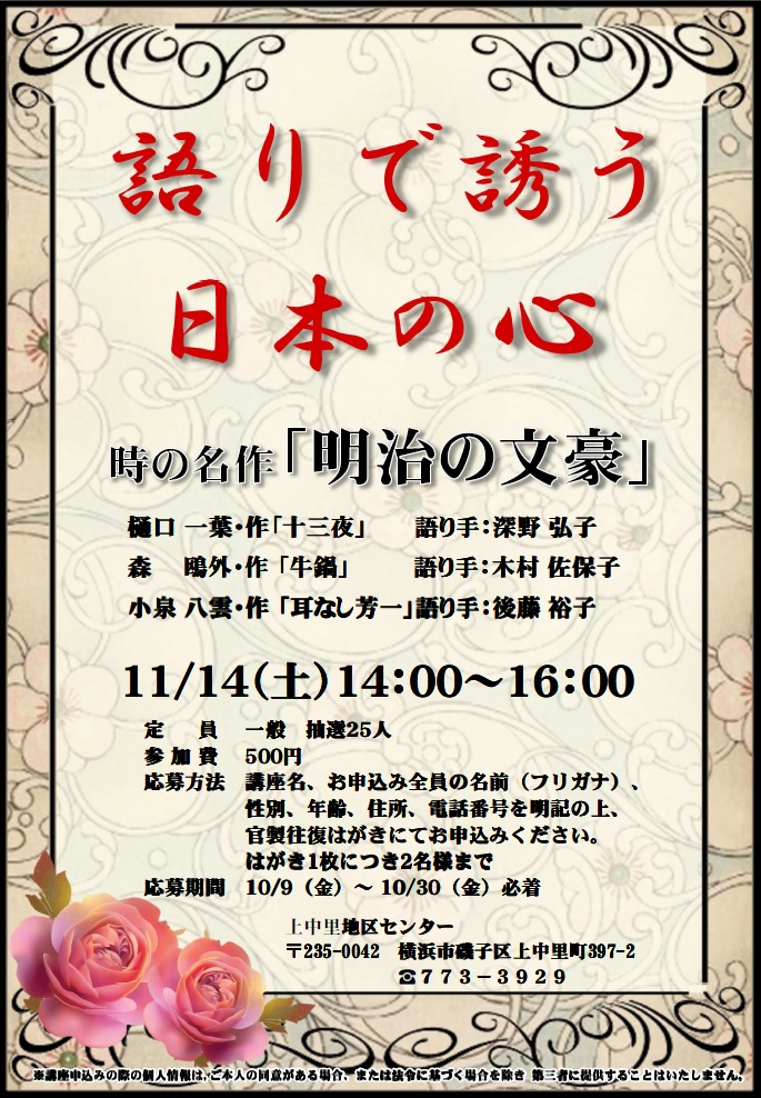 森 鴎外「牛鍋」・樋口 一葉「十三夜」・小泉 八雲「耳なし芳一」
