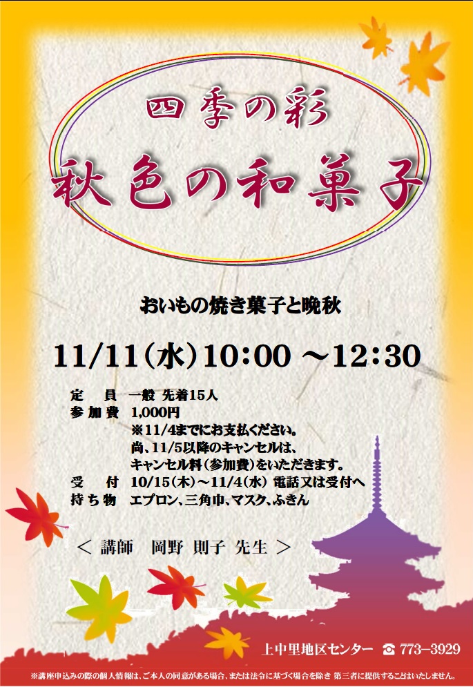 10/5(火)~10/27(火)電話または受付へ