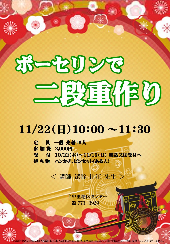 10/23(金)~11/13(金)電話または受付へ