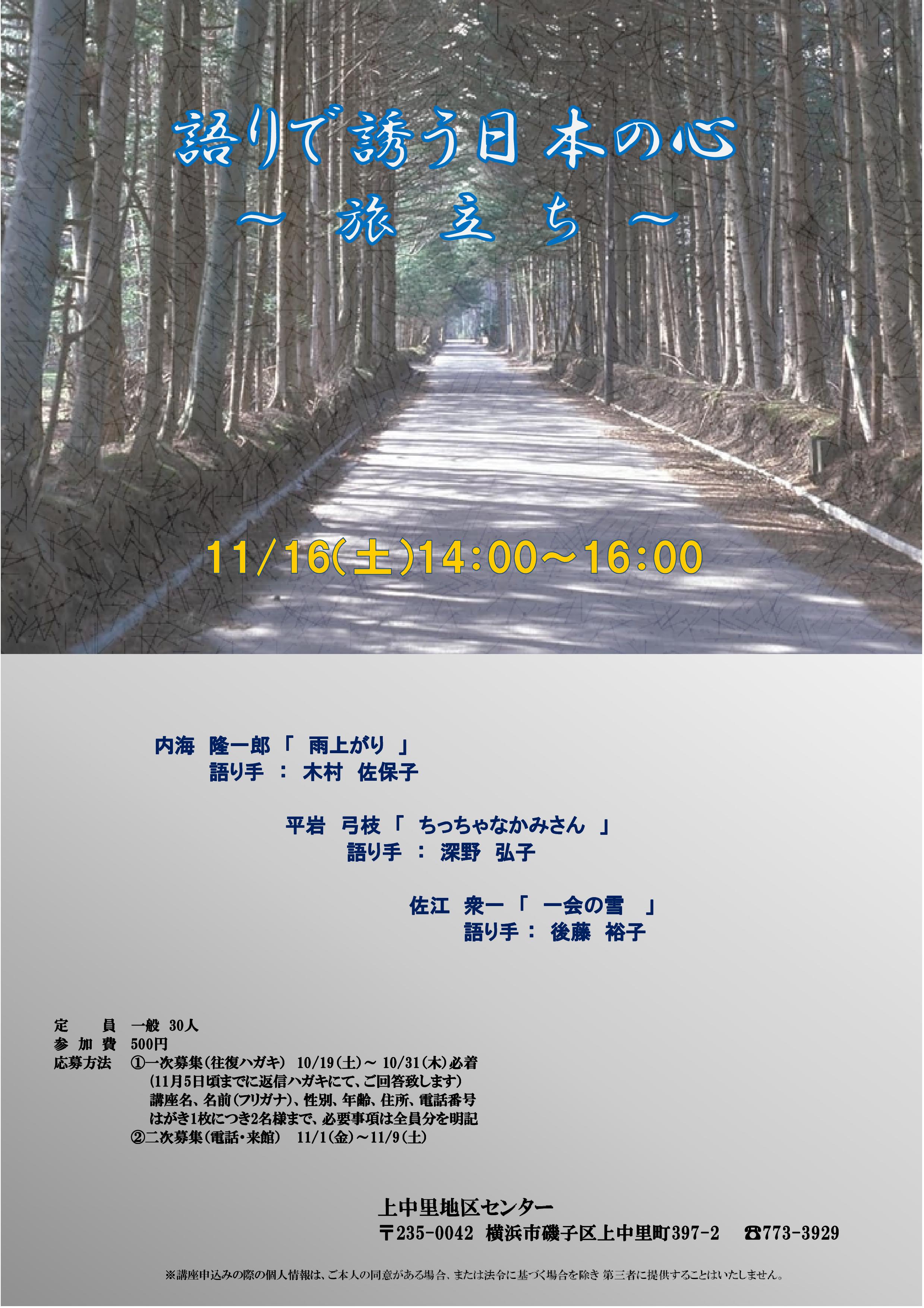 「旅立ち」をテーマに3人の語り手が物語の世界に誘います。