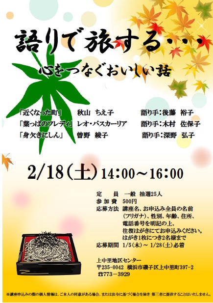 - 語り手:木村 佐保子、後藤 裕子、深野 弘子