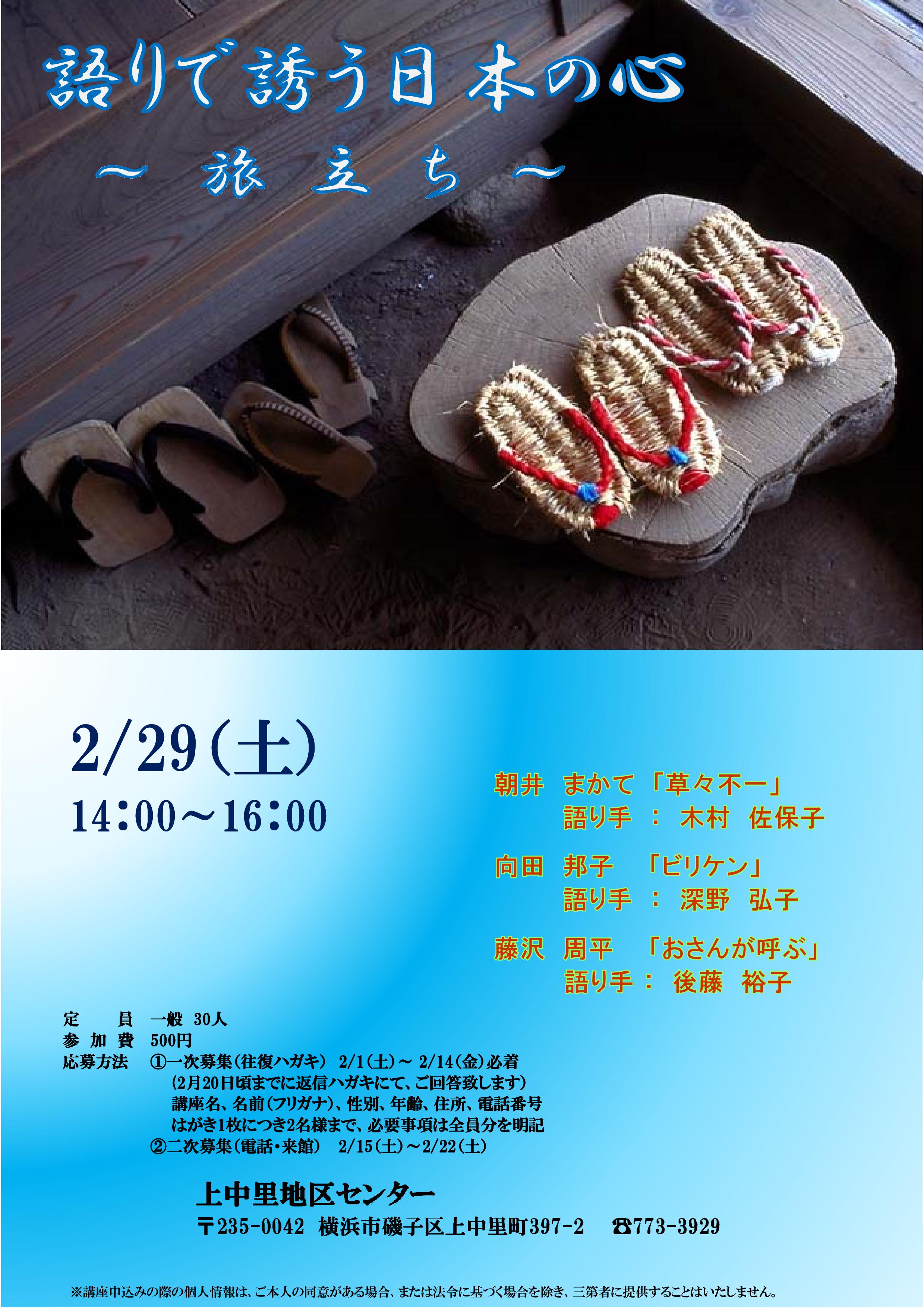 「旅立ち」をテーマに三人の語り手が選んだ物語の世界に「語り」で誘います。