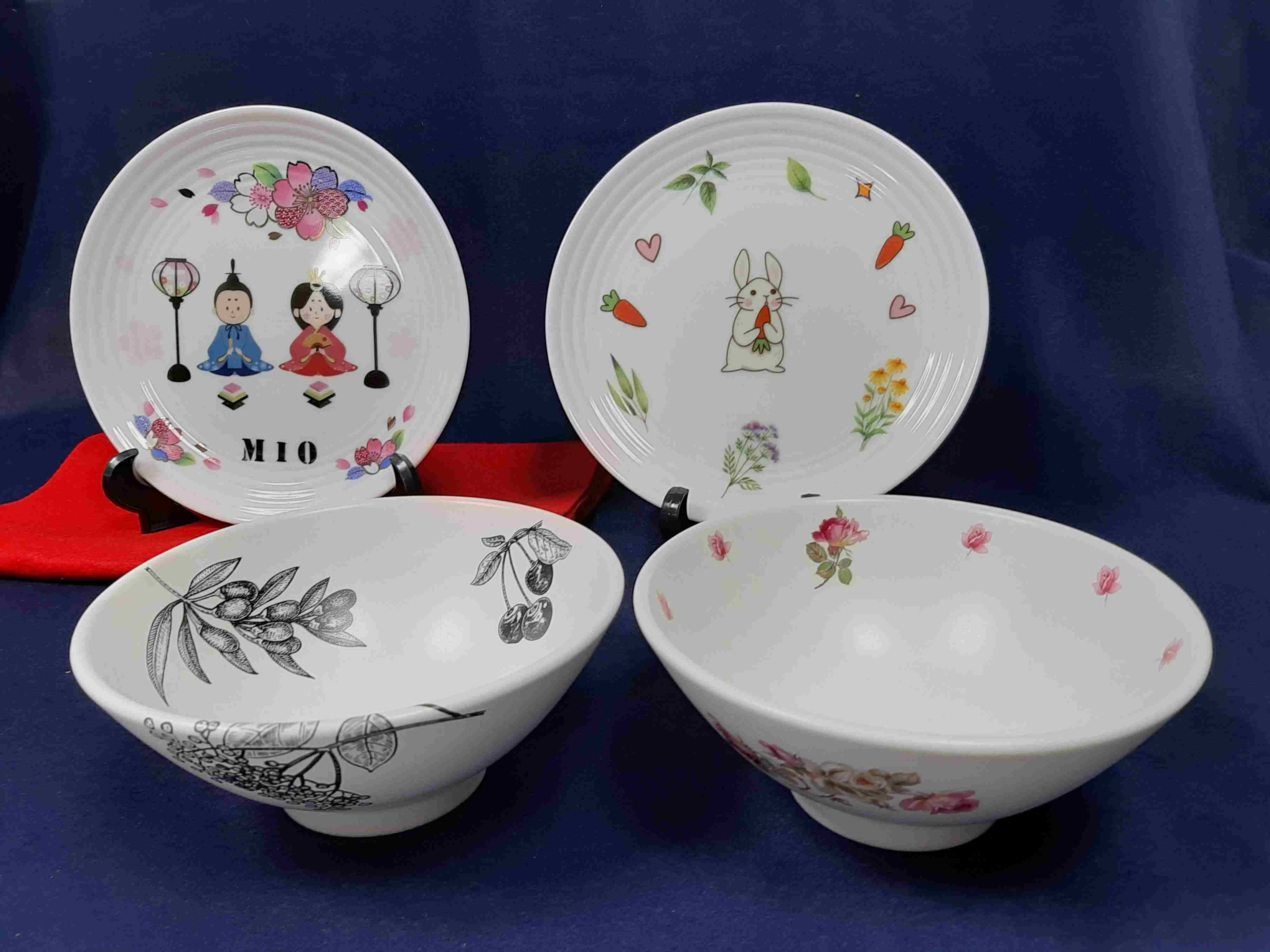 季節の「お雛様」から「一般柄」まで多彩な絵柄を取りそろえ、プレート、丼ぶり(中) のどちらかを選んでいただいて作品を作ります。お子様から大人までどなたでも参加して楽しめます。世界に一つのオリジナル作品を作りましょう!