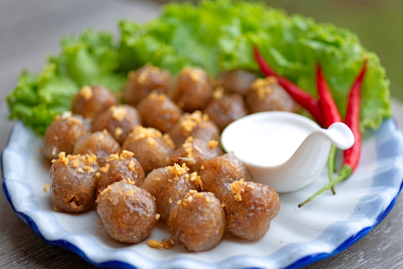 タイではおなじみのお茶のお供!タピオカ饅頭。お饅頭だけど甘くない