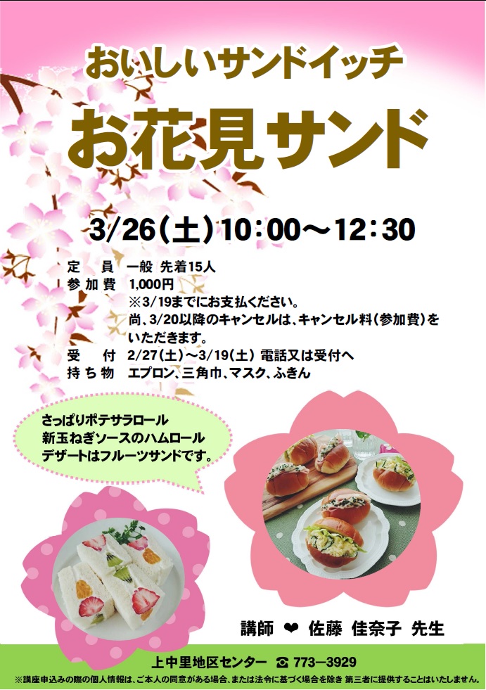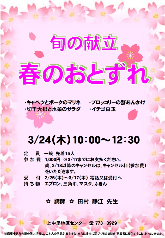 3/1以降のキャンセルは、キャンセル料(参加費)をいただきます。
