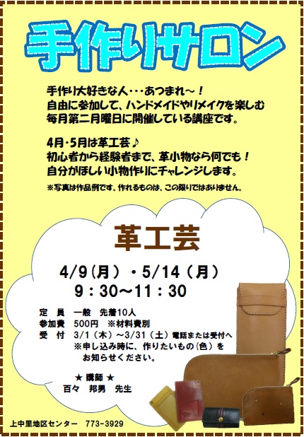 4月・5月は革工芸♪