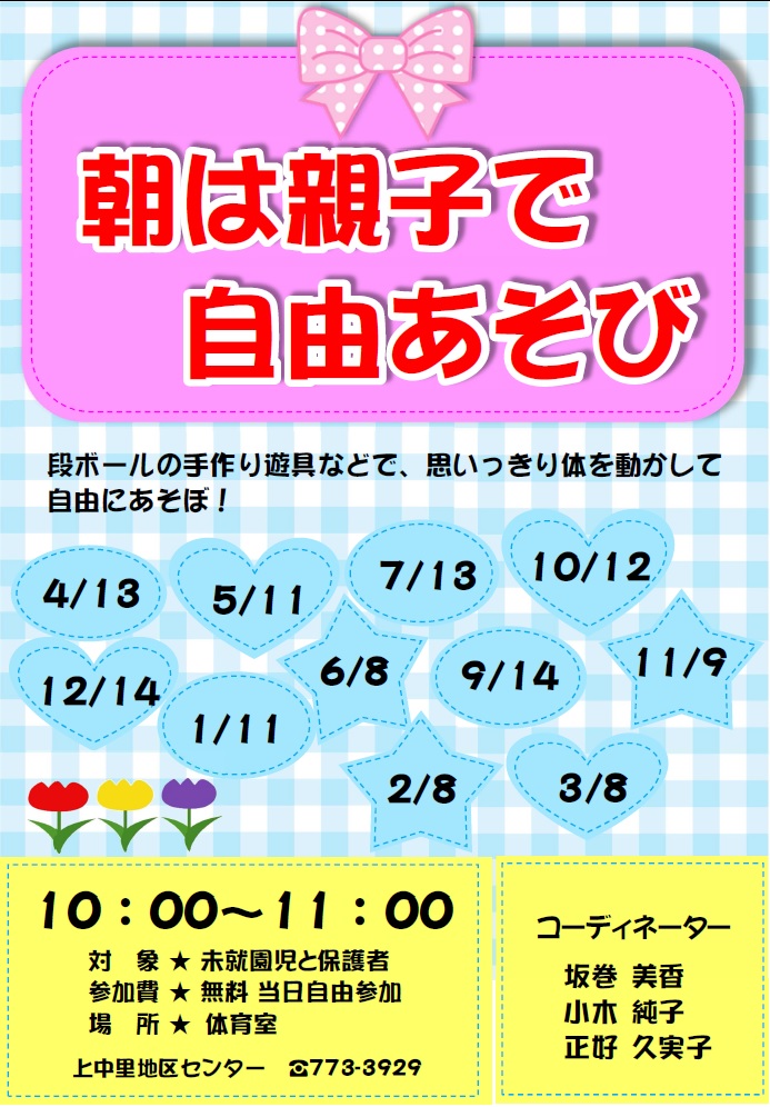 また、コーディネーターが各回ごとテーマを決めて、楽しい遊びを演出します。
