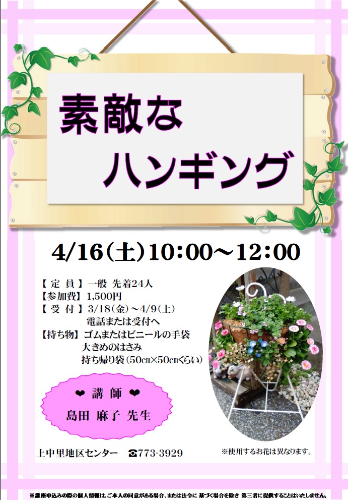 - 4/10以降のキャンセルは、キャンセル料(参加費)をいただきます。