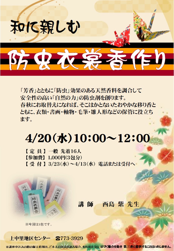 そこはかとないたおやかな香りとともに防虫効果のある天然香料を配合する、安全性の高い防虫剤を作ります。