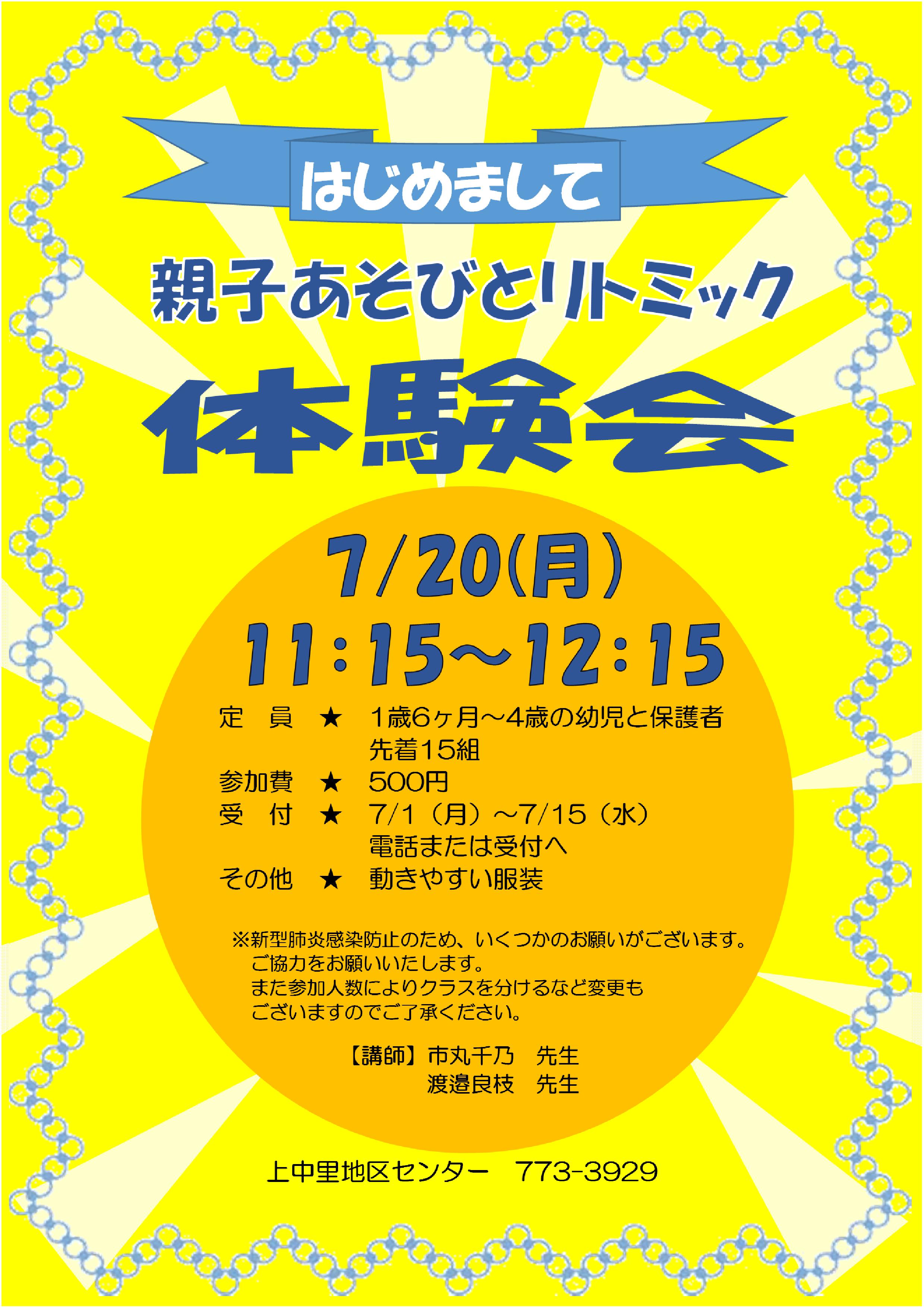 親子でリズムに合わせて運動や手遊び造形などを楽しみます。