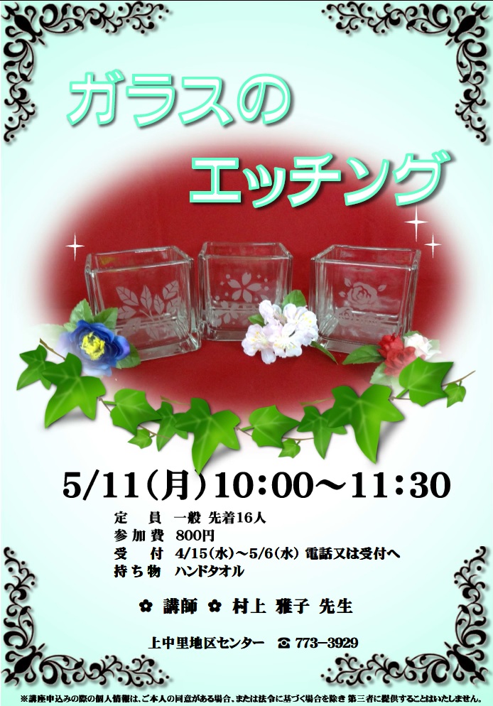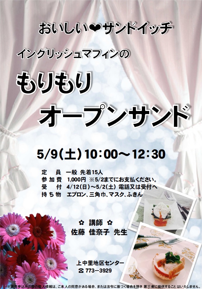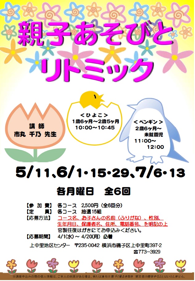 - 4/23(木)~5/15(金)電話または受付へ