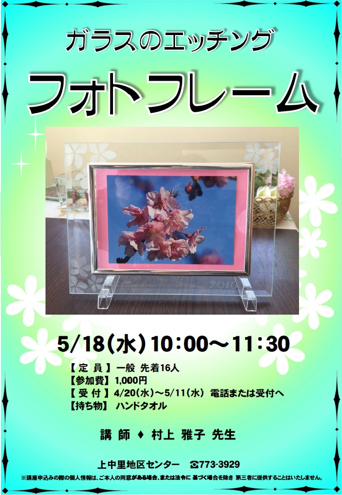 4/25(月)~5/18(水)電話または受付へ