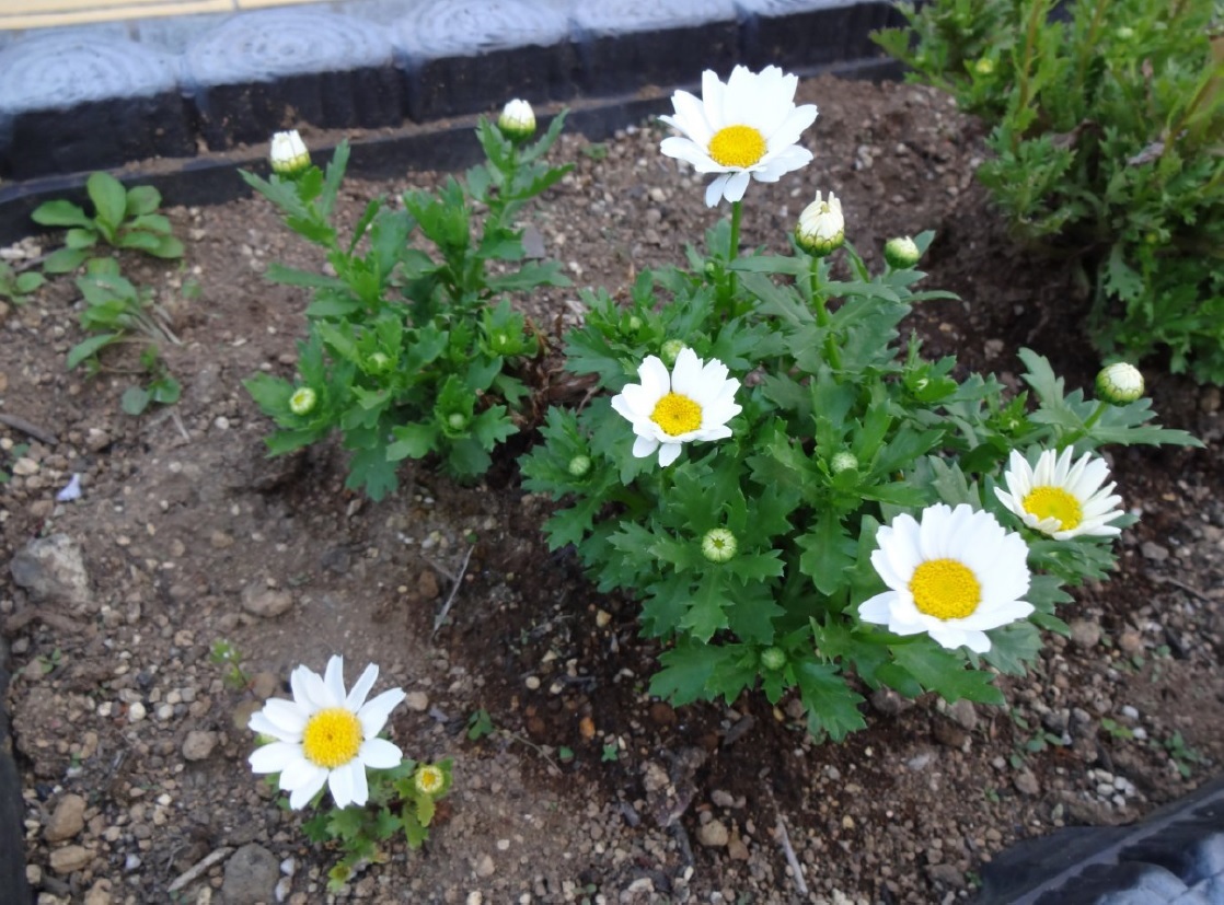 かわいい季節の花を、みんなでセンターのプランターに植えます。