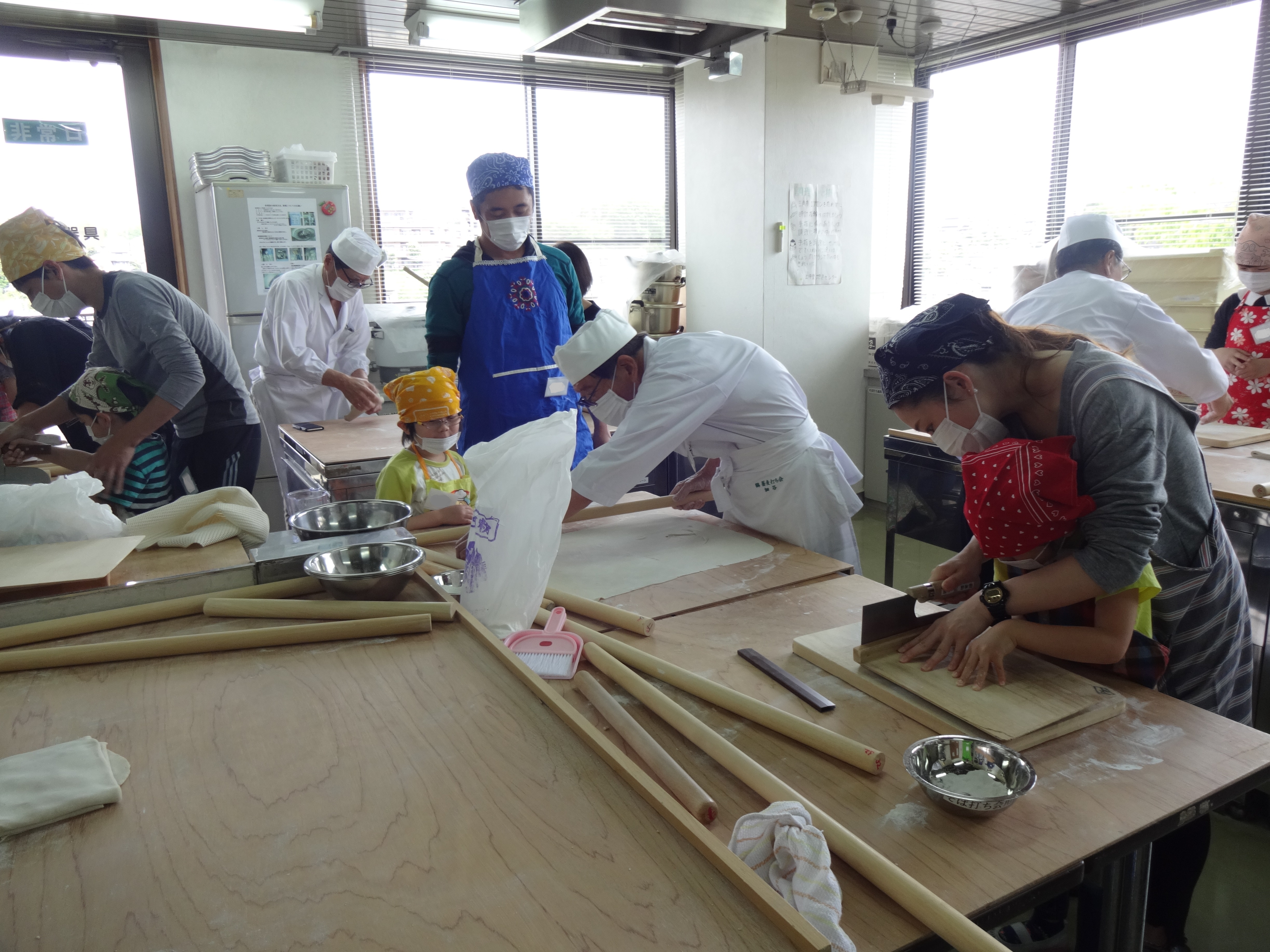 そば打ち名人ご指導のもと、親子で楽しくそば打ちを体験して、打ちたてを食べます。