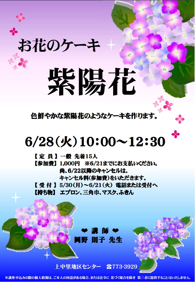梅雨のティータイムに華を添える、紫陽花のような色鮮やかなケーキを作ります。