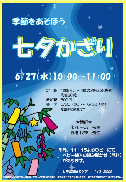 七夕かざりを作って、地区センターのロビーに飾ります。