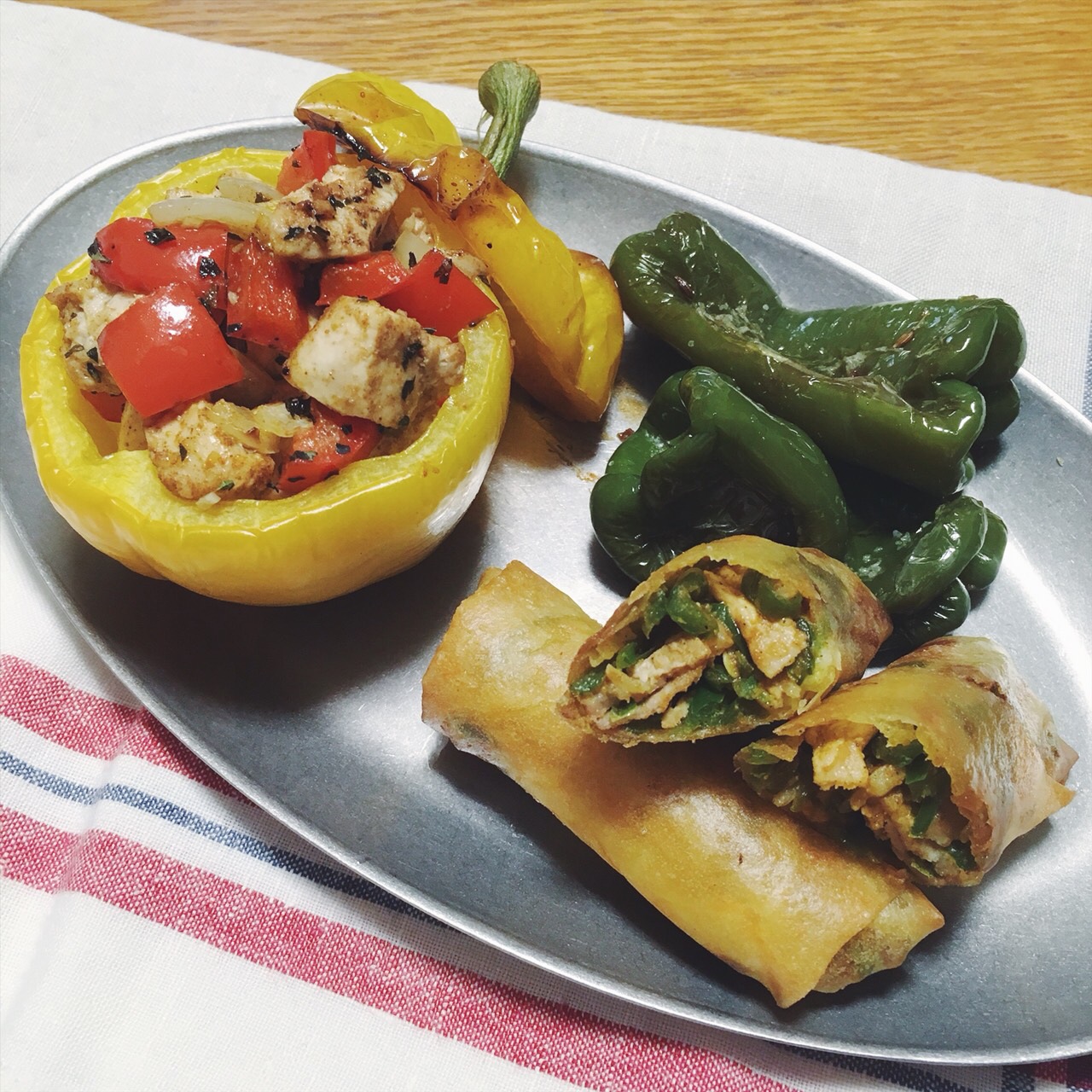 スパイシーパプリカカップ・カレー青椒肉絲春巻き・ピーマンのクミンオイル蒸し焼き