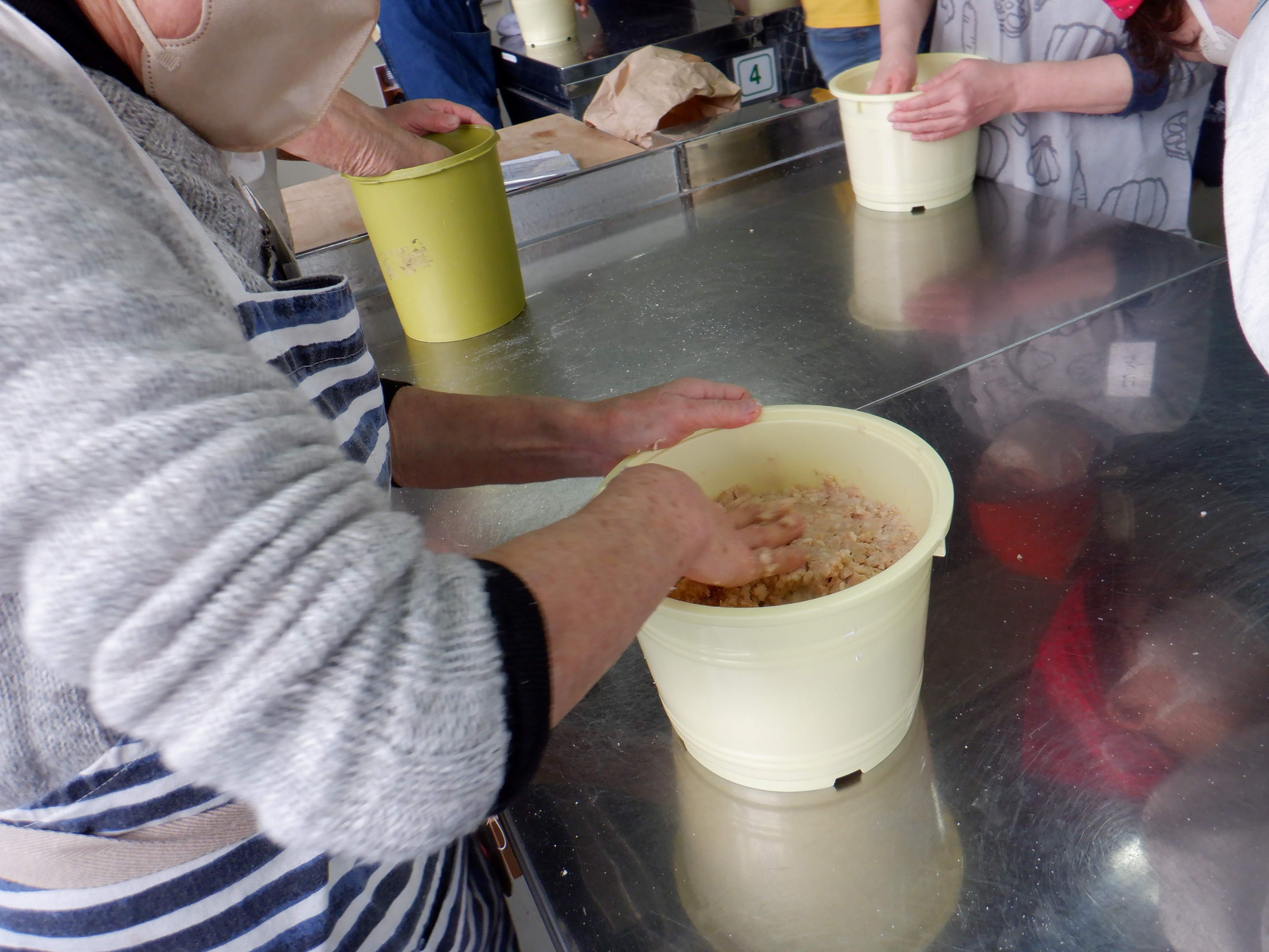 - 持ち物:エプロン、三角巾、マスク、ふきん、持ち帰り用容器(3L入る容器)※複数に分けて持ち帰るのはNG