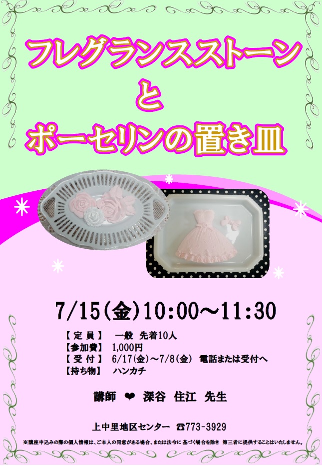 石膏に香りをつけたかわいいオブジェと、ポーセリンで置皿を作ります。