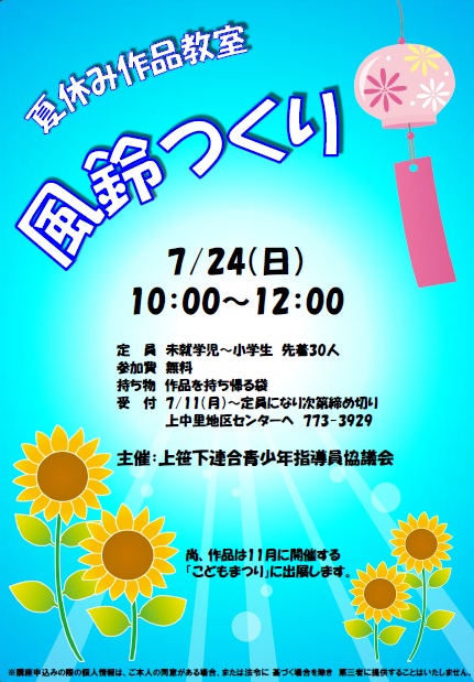 - 主催:上笹下連合青少年指導員協議会