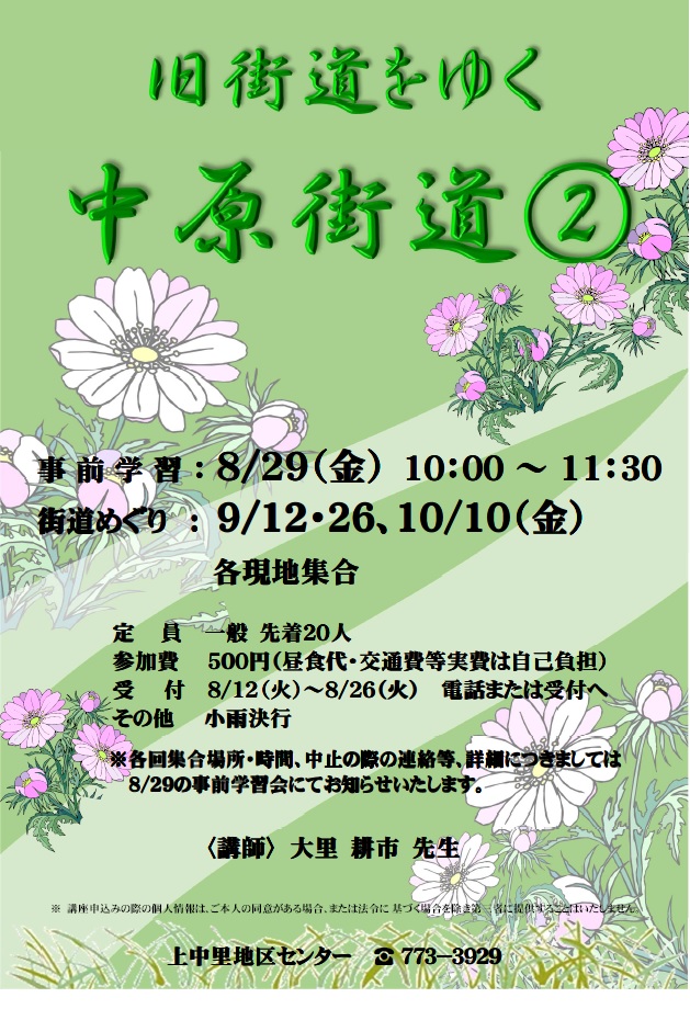 - 7月22日(火)~8月14日(木) 電話または受付へ