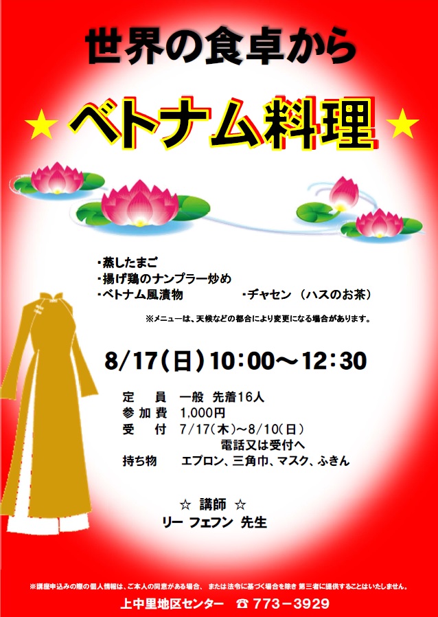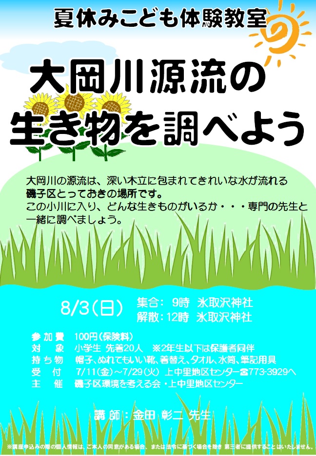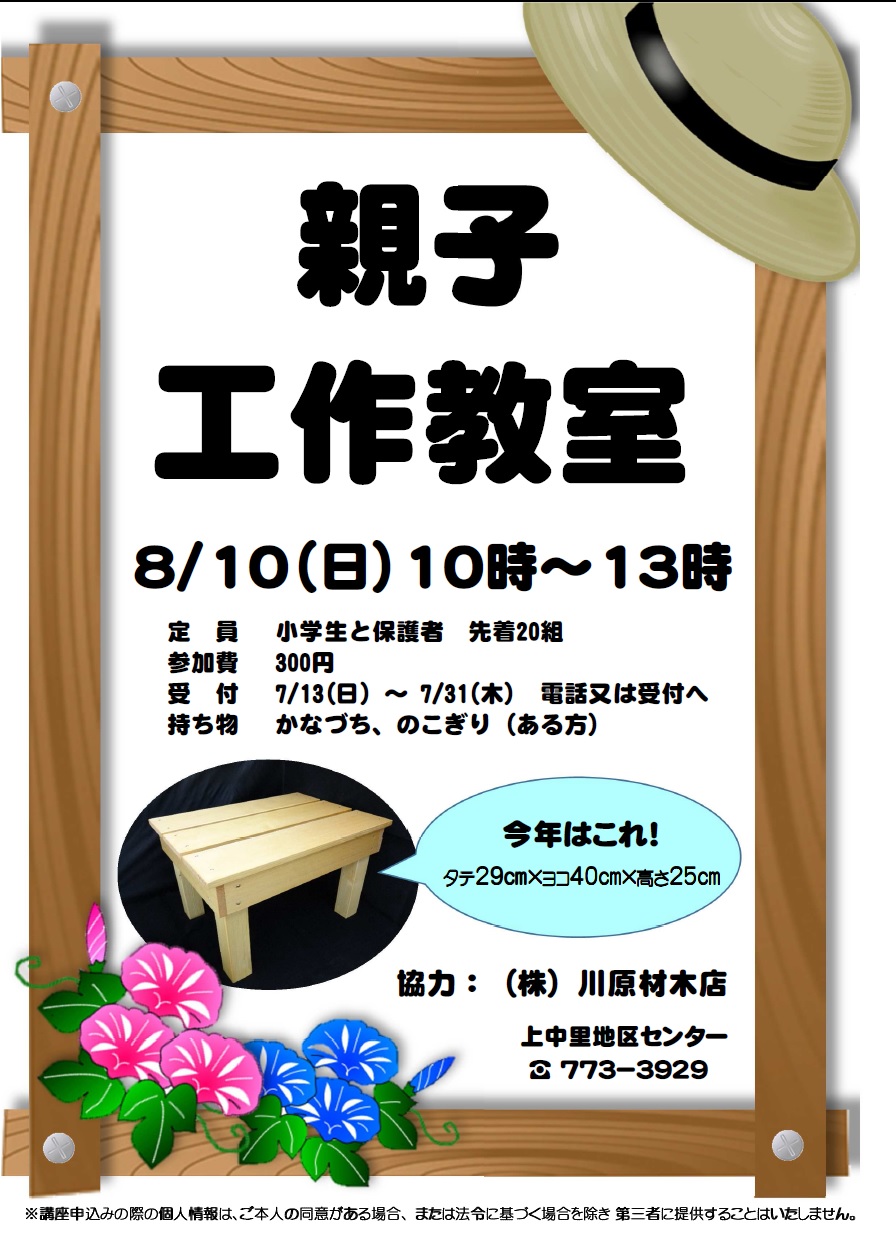 - 7月13日(日)~7月31日(木)電話または受付へ