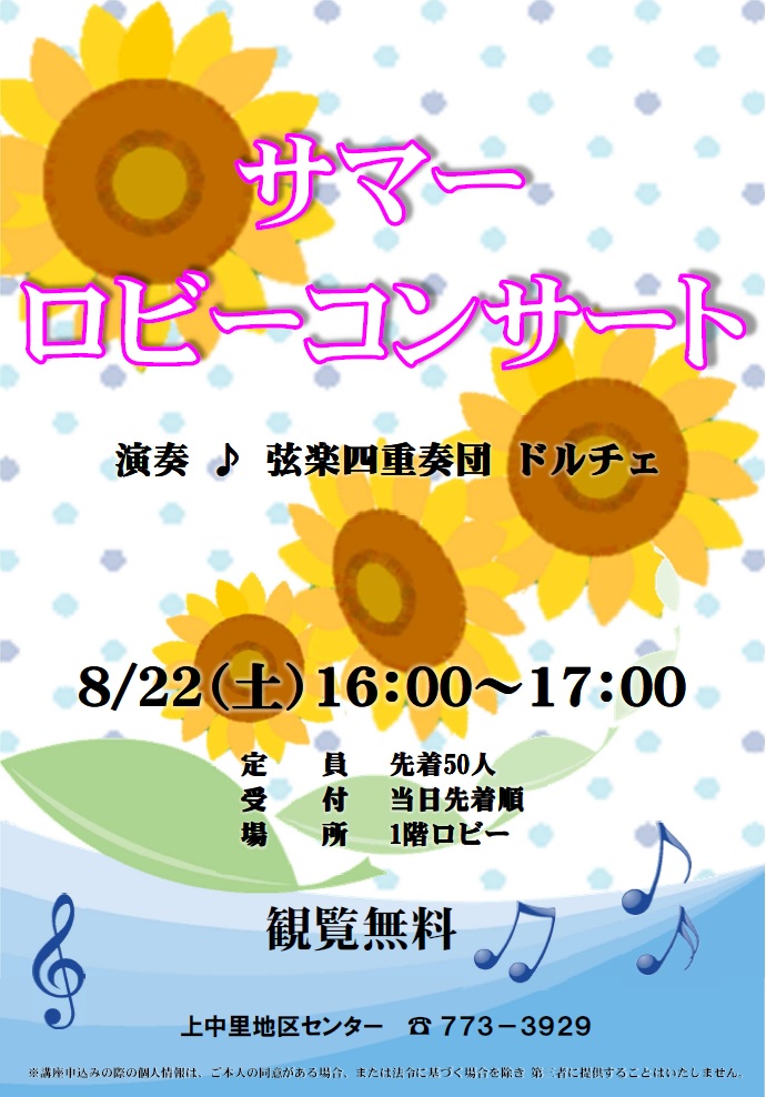 弦楽四重奏団・ドルチェが、夏の夕べに癒しのひとときをお届けします。