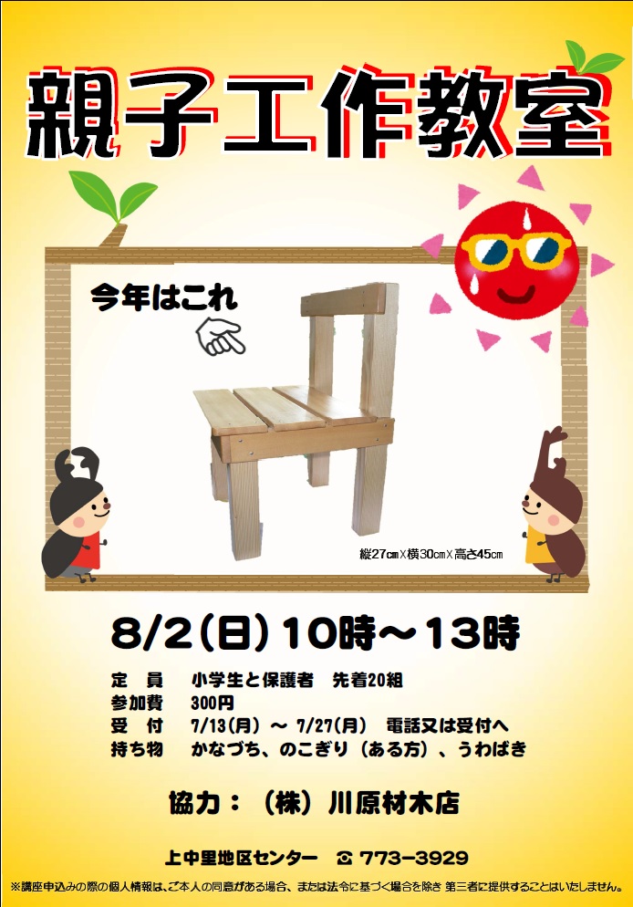 - 持ち物:かなづち、のこぎり(ある人)、うわばき