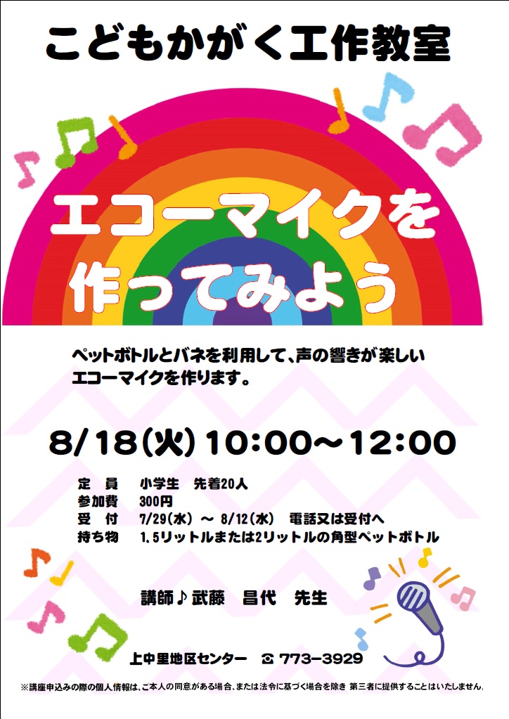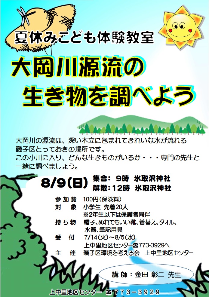 - 持ち物:帽子、ぬれてもいい靴、着替え、水筒、筆記用具