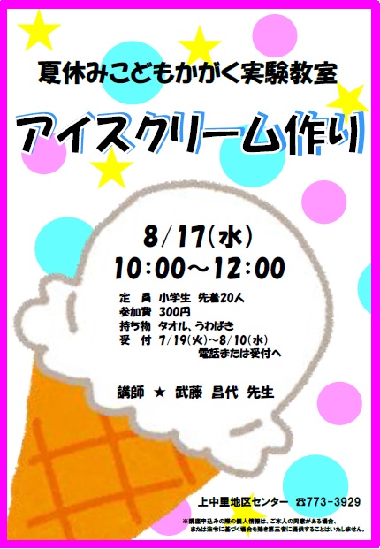 アイスクリームを作りながら、化学の不思議を楽しく学びます。