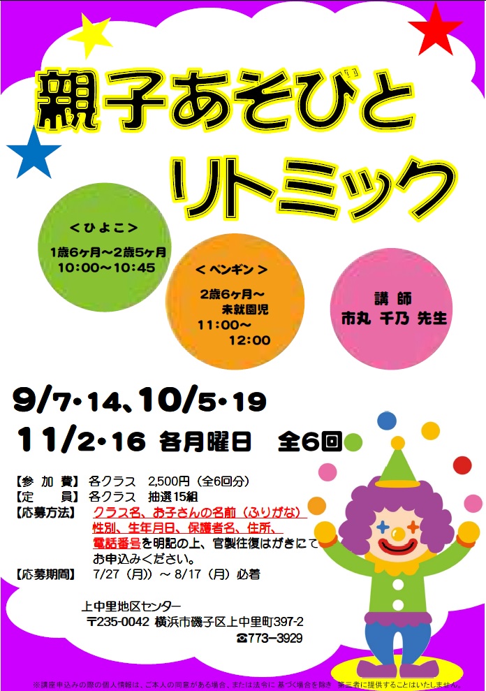 - 応募人数により、クラス編成や時間が変更になる場合があります。