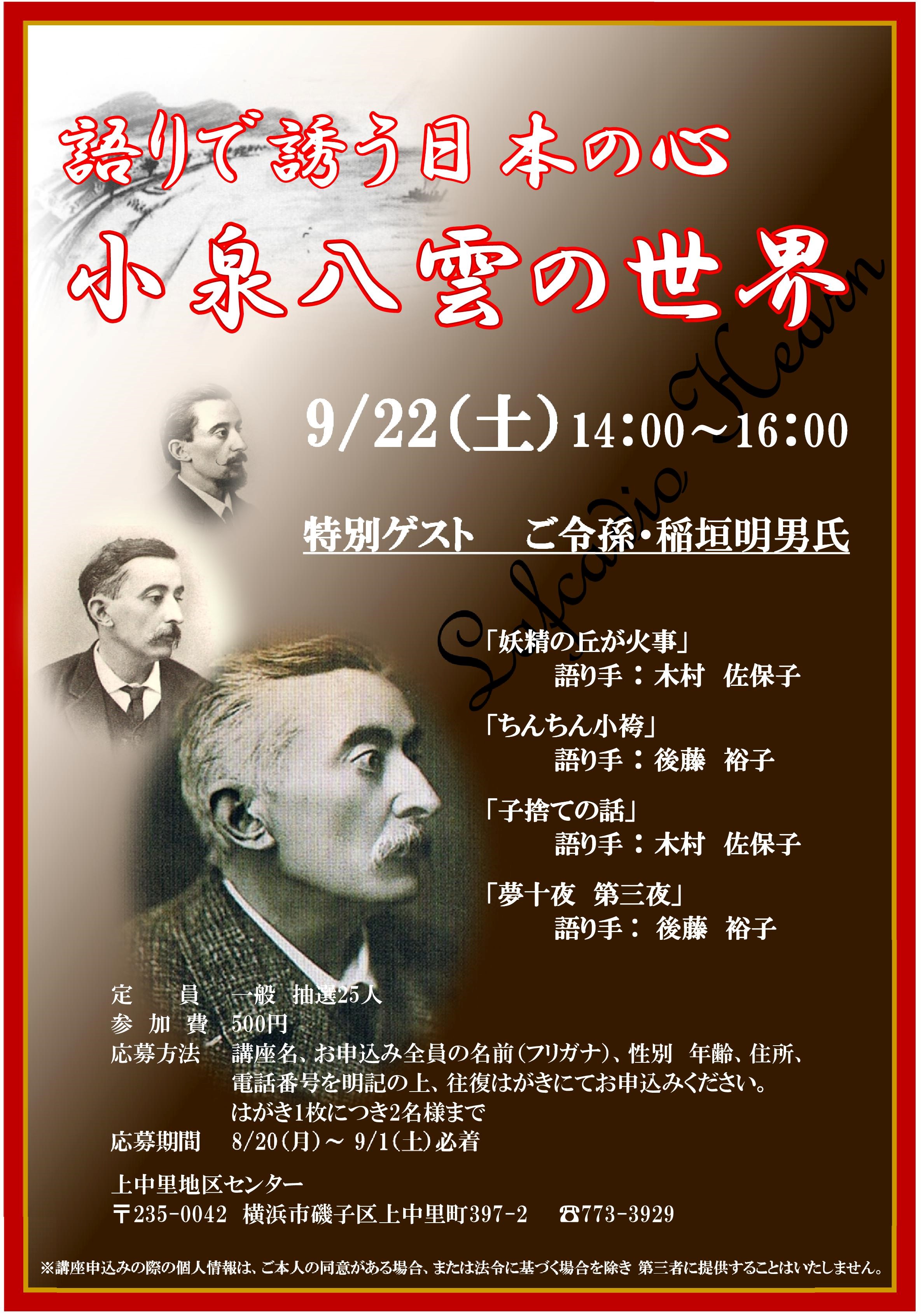 ご令孫・稲垣明男氏をお迎えし、八雲の軌跡をたどりながら作品の魅力に迫ります。
