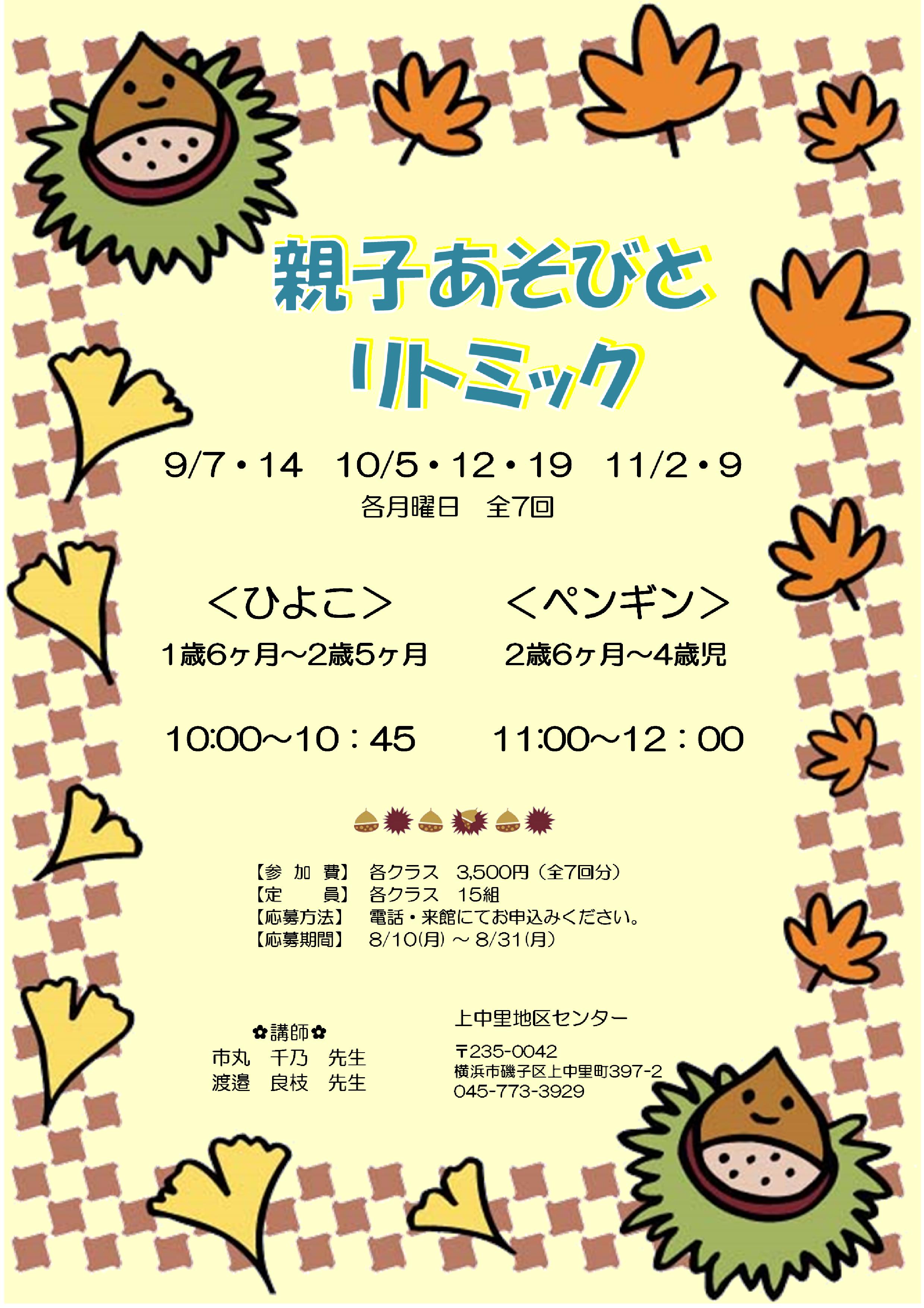 - 親子ともに動きやすい服装でお越しください。