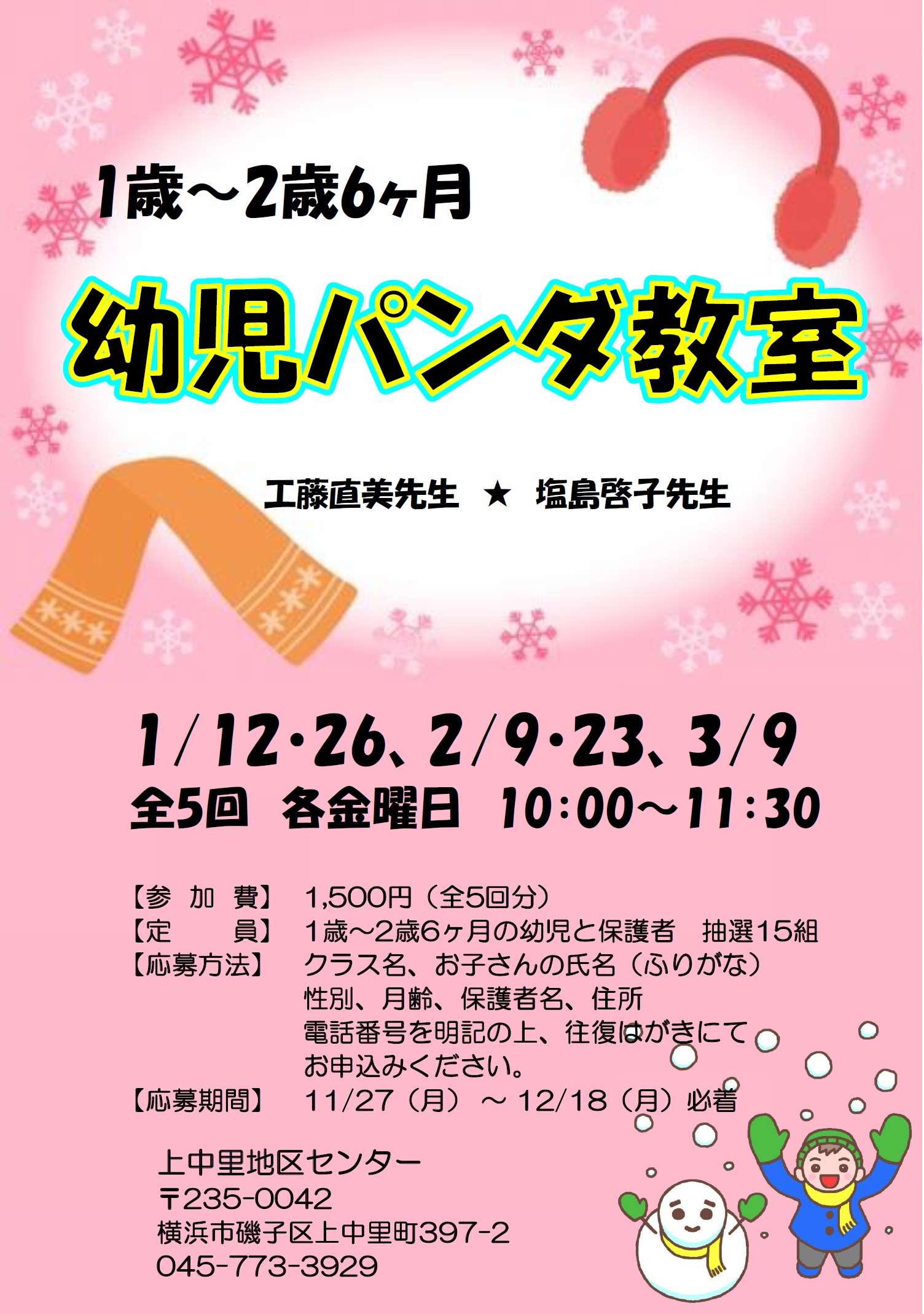 - 1/15・29、2/5・19、3/5・12 各月曜日