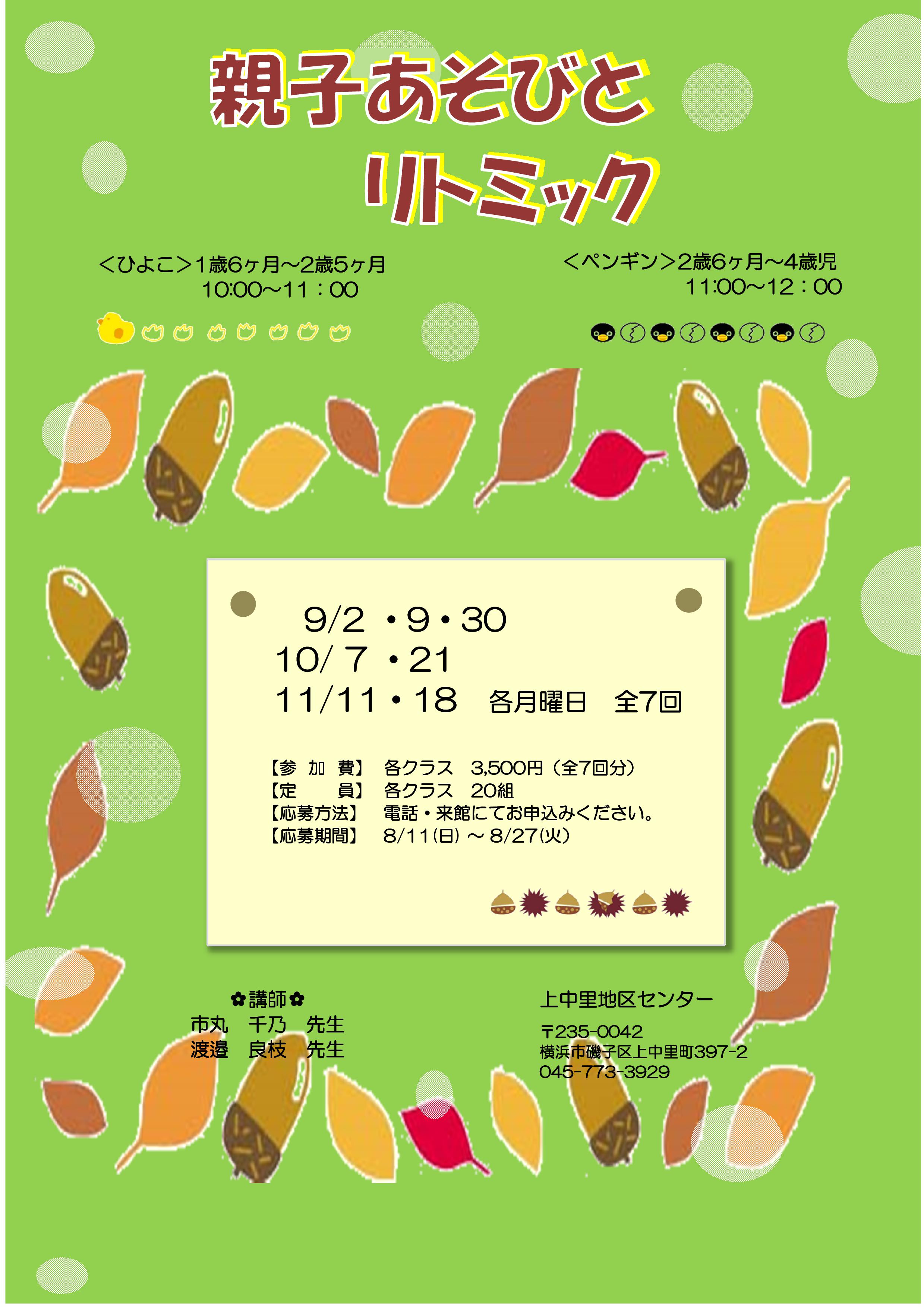 - 「ひよこ」 1歳6ヶ月児~2歳5ヶ月児と保護者