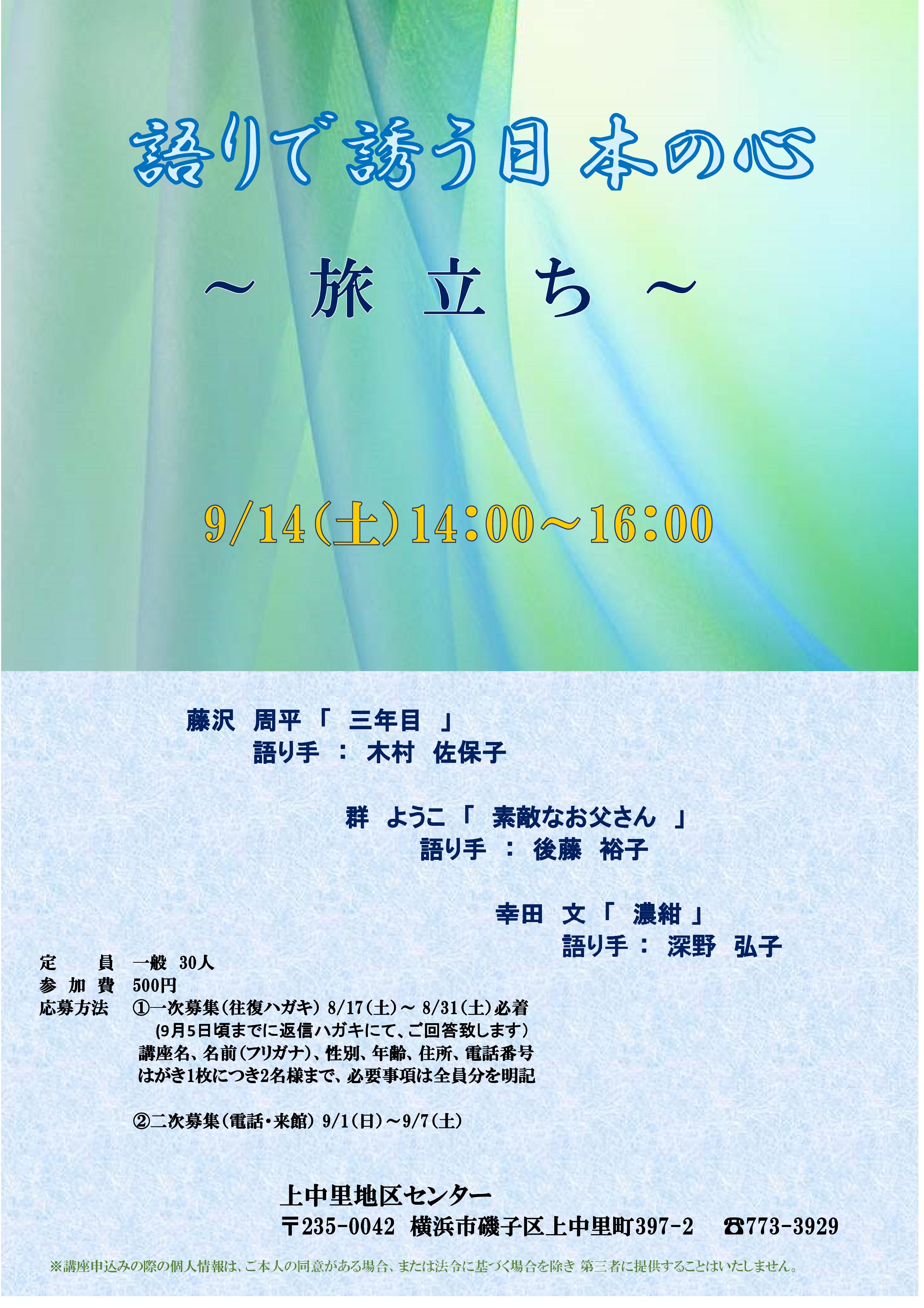 講座名・住所・氏名(フリガナ)・年齢・電話番号を明記の上応募