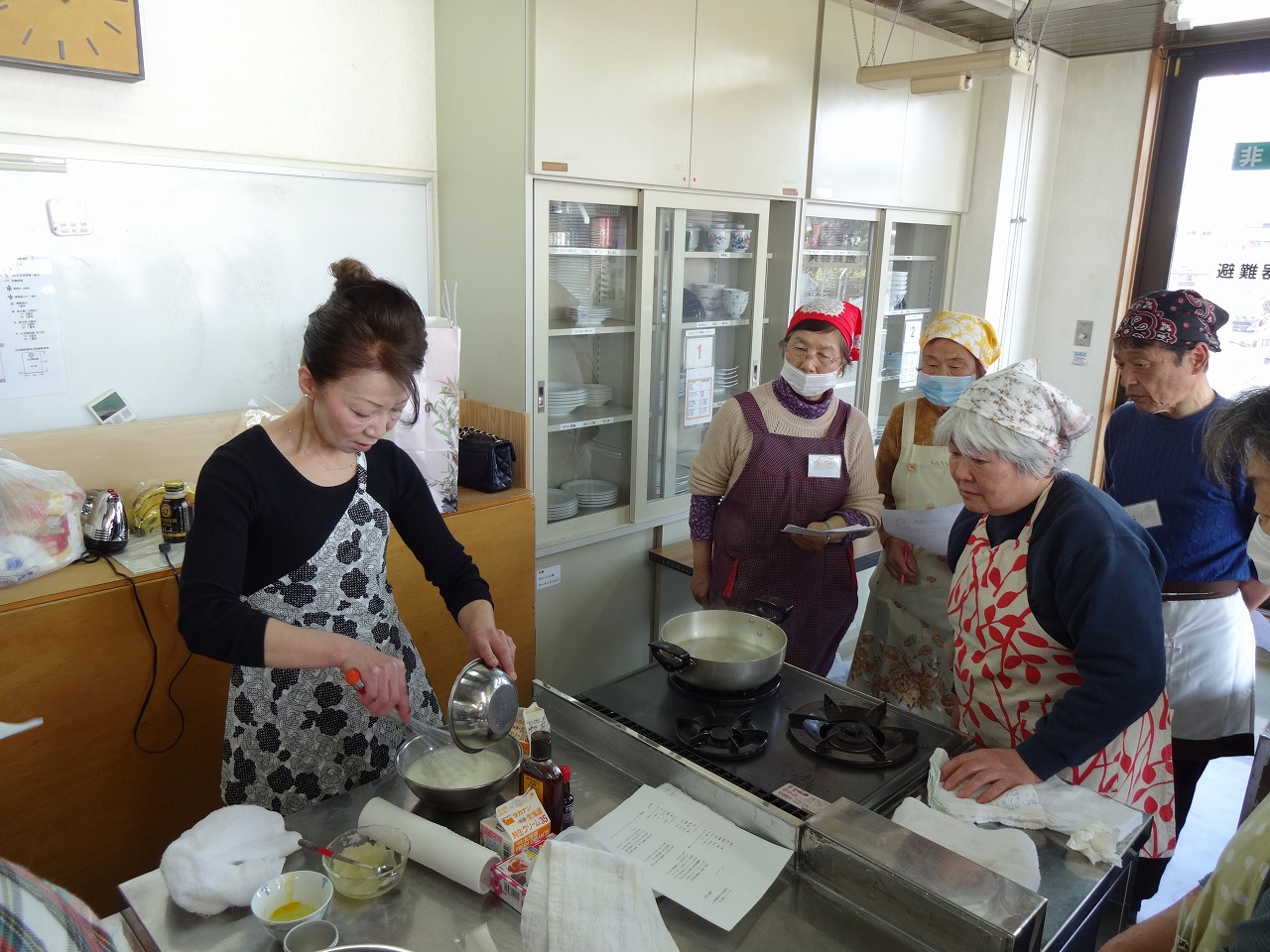 ジェノワーズは、白身と黄身を別々に泡立てましょう。失敗しないコツは、いつも同じように丁寧に泡立てること!と先生からアドバイスがありました。