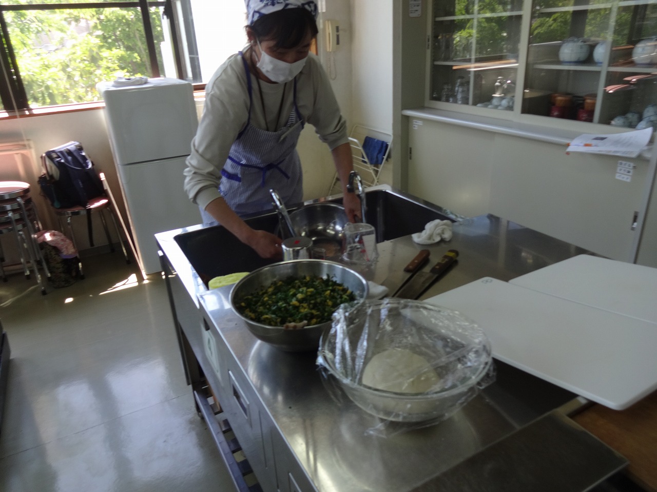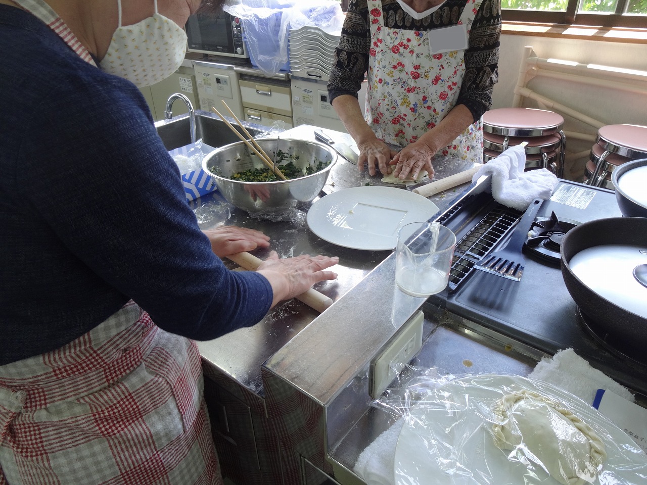 皮から手作り、ニラのおやきを作りました。 皮づくりには少してこづったところもありましたが、 ニラの食欲をそそる香り、香ばしいおやきがみるみる 出来上がりました。 ボリュームもたっぷりで食事として堂々主役の 「にらおやき」でした!