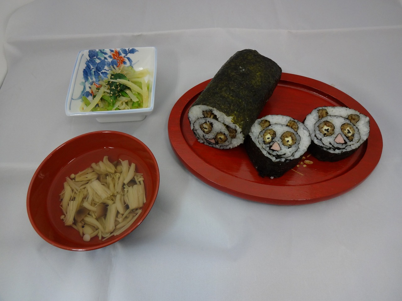 今回は、巻き簾を使い巻き寿司を作りました。 人気のパンダの絵柄は、子供にも大人にも好評だと思います。 巻き始めるまでは少々手間取っていた方もいらっしゃったようですが、最後は皆さん完璧なパンダの巻き寿司が出来上がりました!