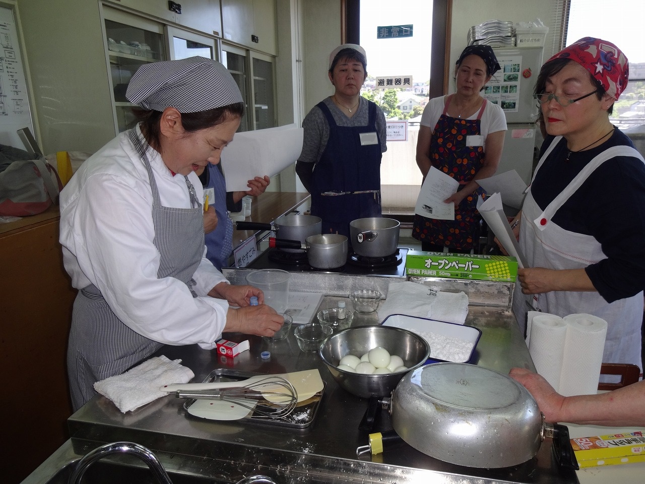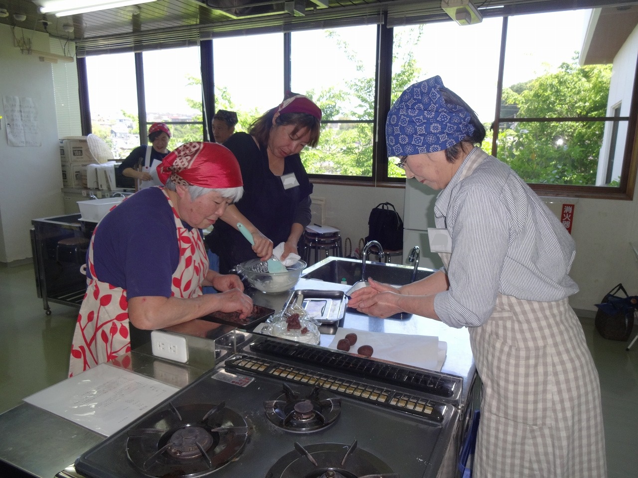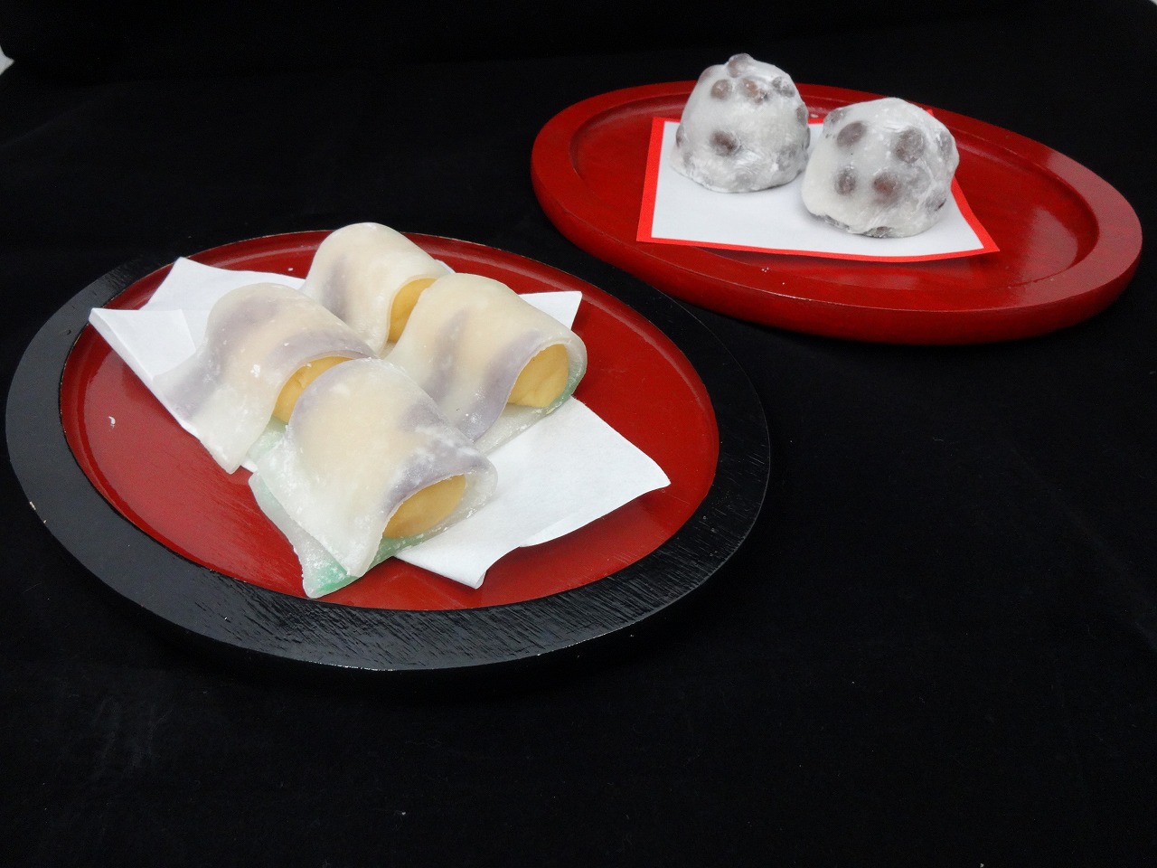 和菓子の王道、黄身あんを使った「ふじ模様」とこれも王道「豆大福」の二品を作りました。