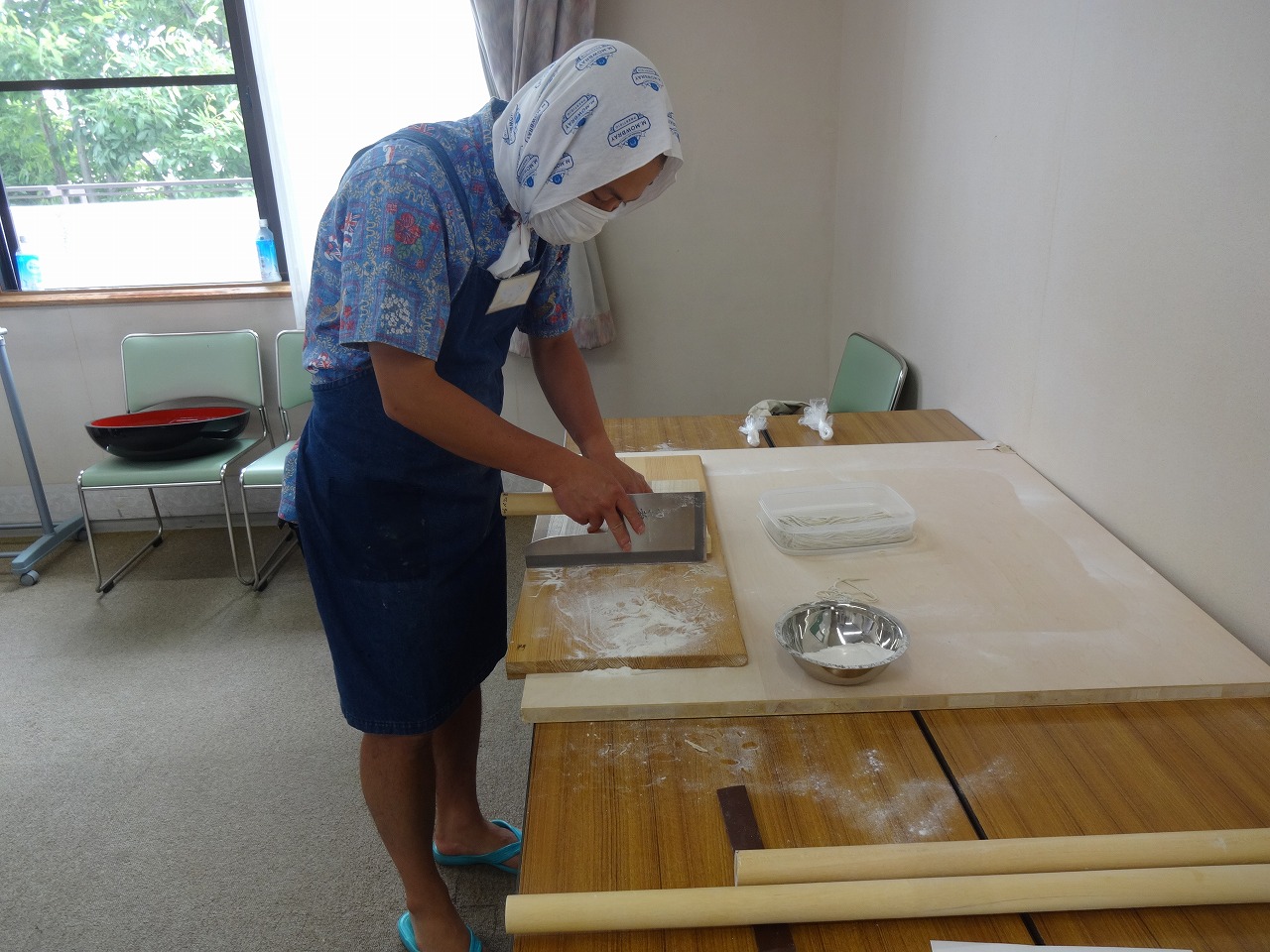 上中里地区センターで好評の講座 「そば打ち」 厳選国産そば粉を使用したそばは 大変美味しく、講師陣の行き届いた 指導により 本当に美しい出来上がりです。 皆様、大満足でした。 センターでは毎月第2・第4土曜日 「そば打ち自習室」を 開催しております。 道具のそろった料理室で 熟練講師がお待ちしております。 ※詳細はセンターまで