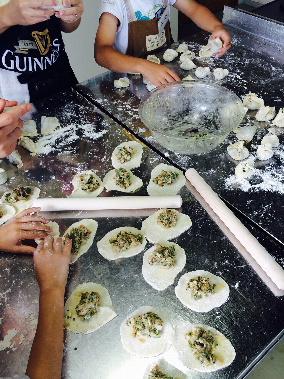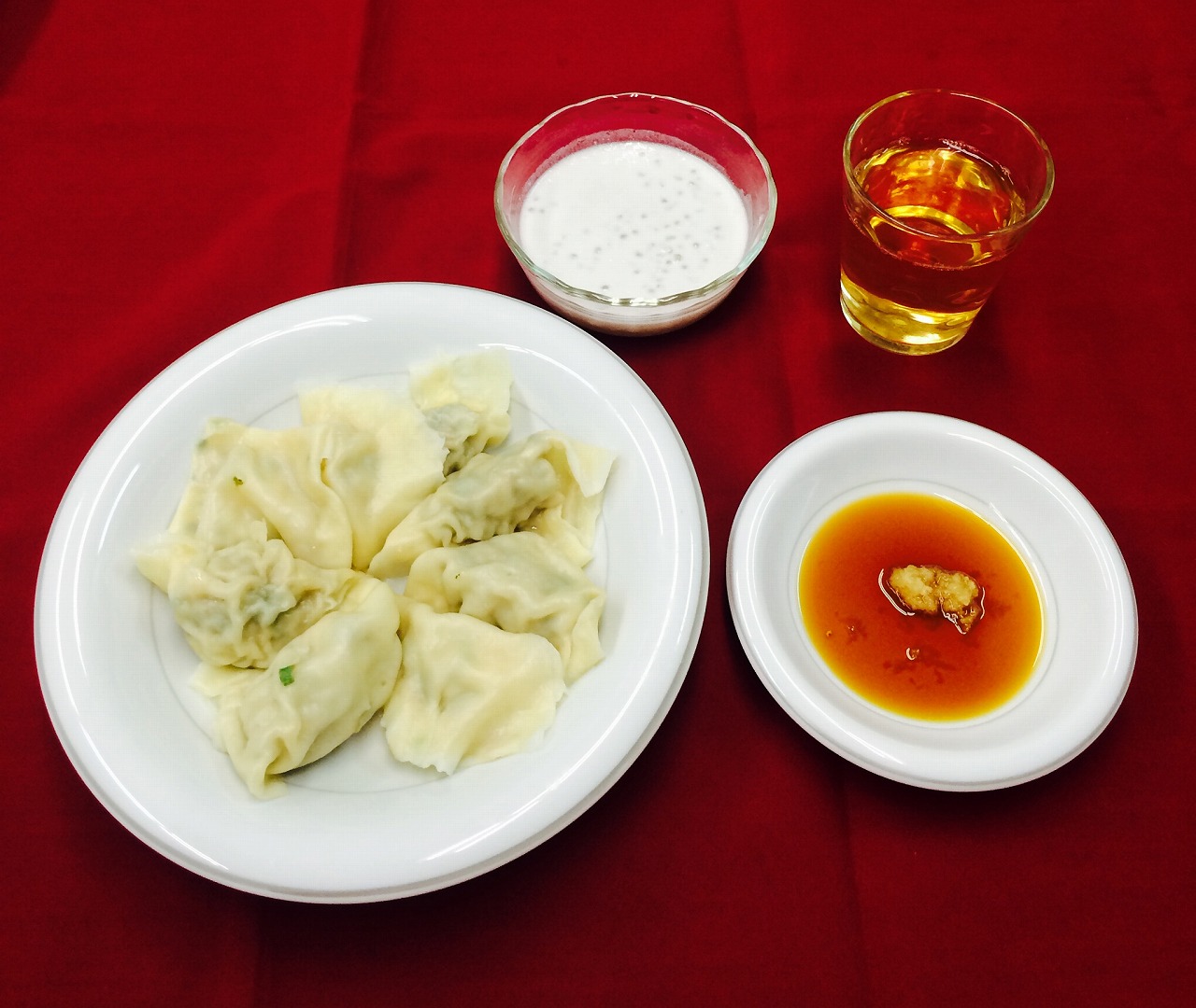 今日はエビ入りです。日本の餃子は中ににんにくを入れますが、中国ではつけだれにお好みで混ぜます。
