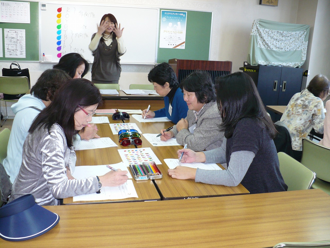 「磨けば光る私」講座 第2弾 生年月日からわかる生まれ持った自分の個性の色を知り、輝く自分を発見し、自分らしく輝いて生きるためのヒント。 私ってどんな人?どんな仕事が向いているの?私を生かす方法って?など一生懸命生きているからこそ溢れてくる様々な思いをカラー診断によって見出す。 「私の輝くカード」を見ながら和気あいあいととした雰囲気の中で自分発見をしていただきました。 私ってこんなだったのね~