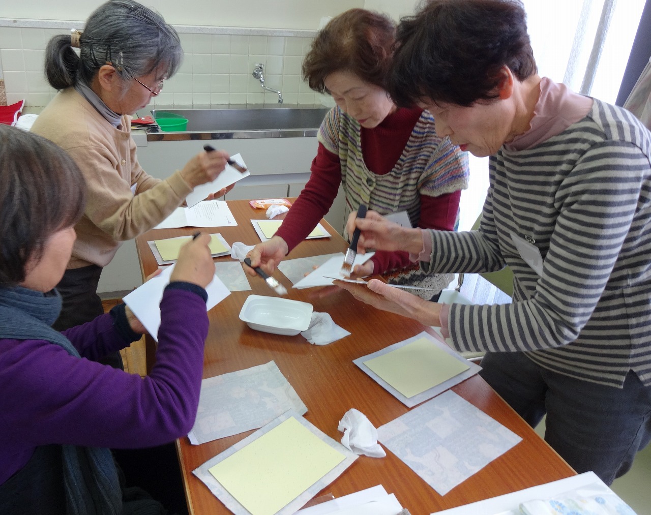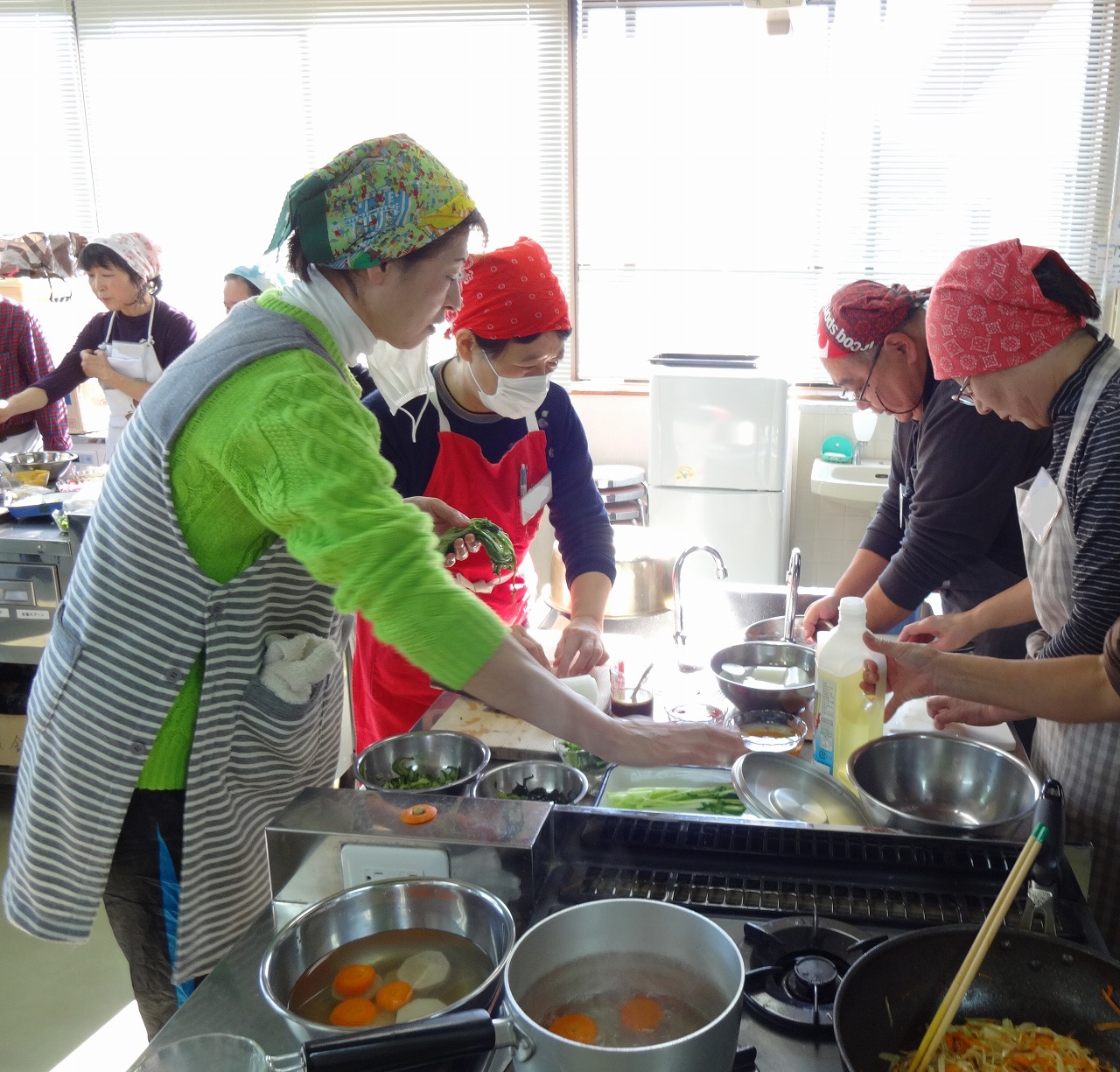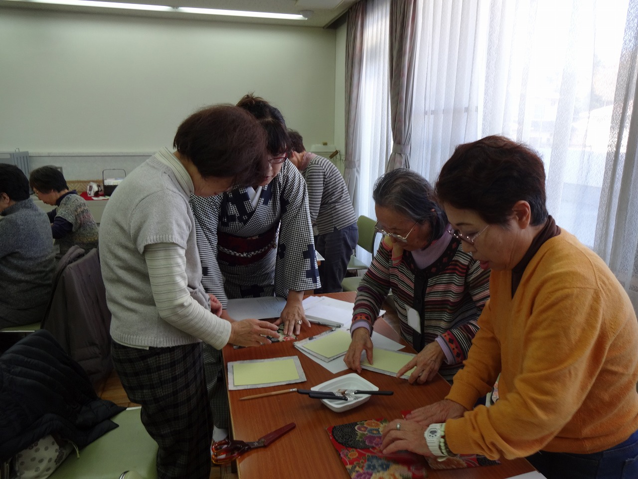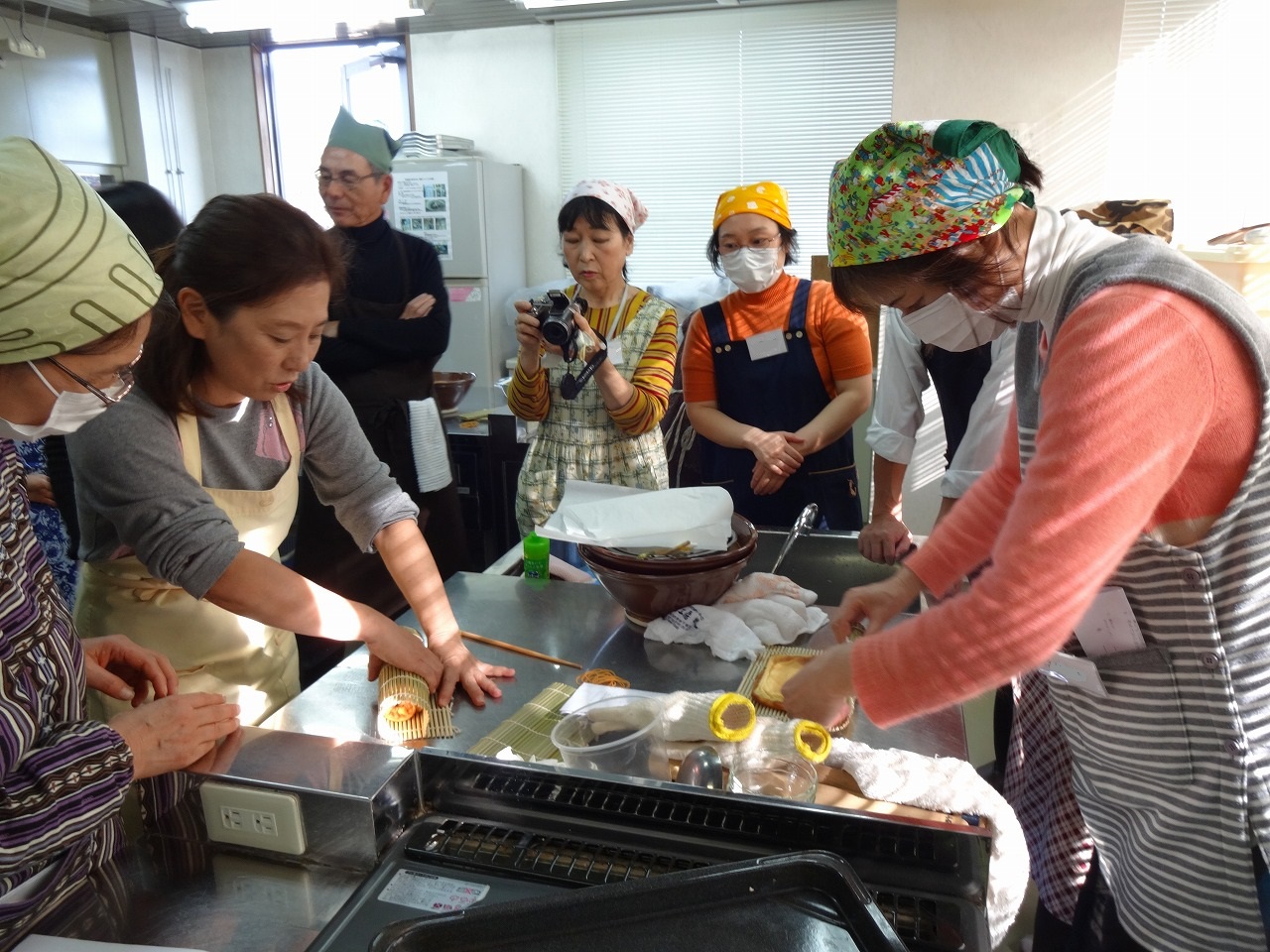 奉書巻の大根を桂剥きにする時は、緊張が走りました。ベテランの皆さんとはいえ、「桂剥きなんて、日頃のお料理ではめったにやらないわよねー。」という声があちこちから・・・。